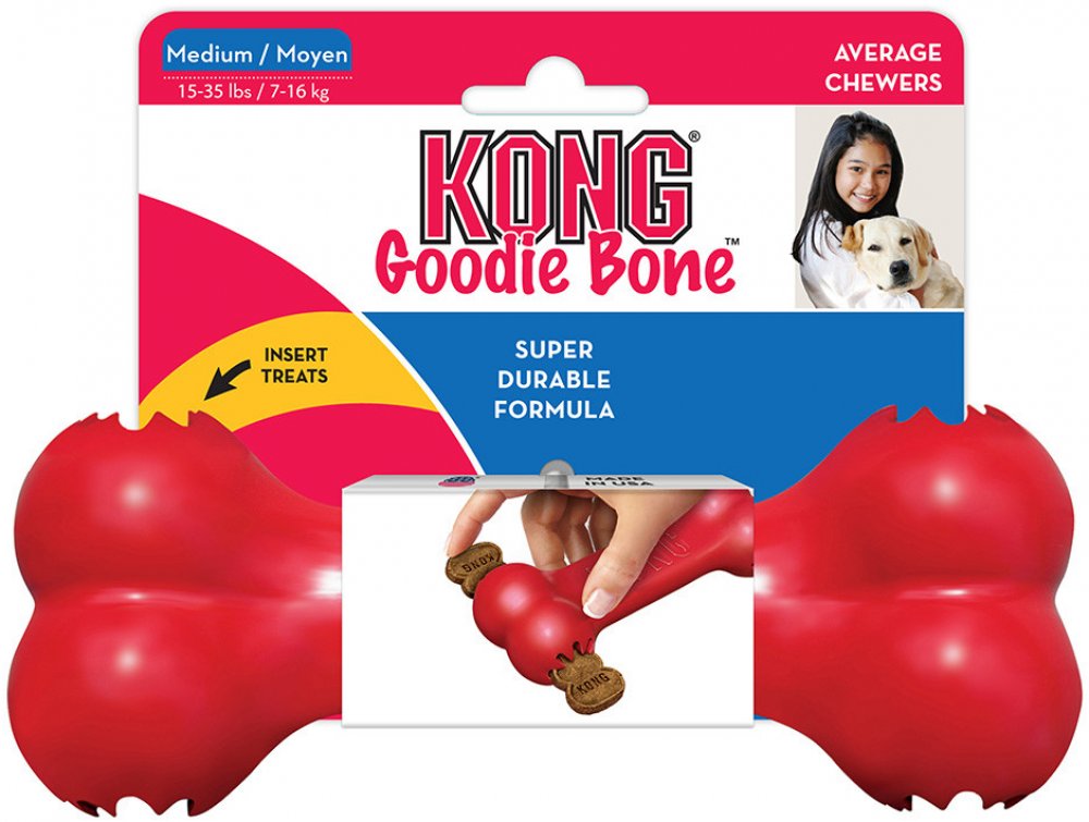S KONG Goodie Bone získáte extrémně odolnou hračku pro psy, kterou může Váš čtyřnohý přítel žvýkat do sytosti. Červená kost je vyrobena z přírodního kaučuku známého z KONG Classic a je ideální pro aportovací hry i žvýkání. KONG Goodie Bone je vybavena dvěma patentovanými Goodie Grippers™, které lze naplnit pamlsky. To psa ještě více motivuje k tomu, aby se hračkou intenzivně zabýval. Kong Goodie B...