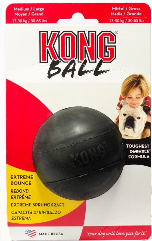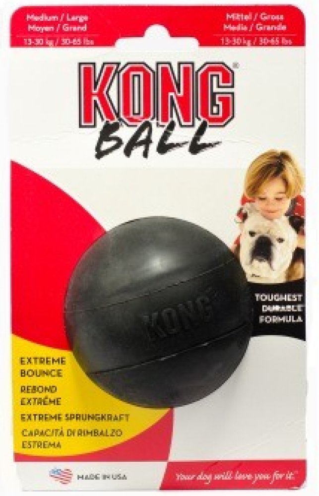 Gumová hračka KONG Míč je perfektní hračka pro psy, kteří milují žvýkání a aportování. Řada KONG Extreme uvádí nejodolnější verzi originálních hraček firmy KONG Company. KONG Extreme Míč je nejpevnější a nejodolnější míček na trhu (odolné proti propíchnutí), vyrobený ze speciální odolné gumy – přírodního kaučuku. Extrémně skákací.