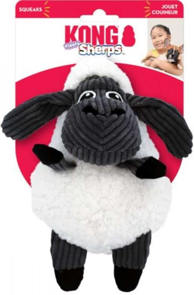 Hračka pro psy KONG Sherps Floofs Sheep – ovce je ideálním společníkem na spaní, mazlení i jemnou hru, nejlépe v interiéru. Je vyrobena z mimořádně hebkého a jemného plyše, který je velmi příjemný na dotek i žvýkání. Hračka navíc vydává celotělové pískavé zvuky, které stejně jako šustící dlouhé uši upoutají pozornost vašeho psa a navnadí ho k další hře. Je vhodná pro psy všech velikostí.