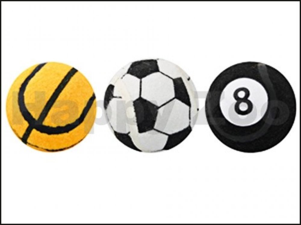Mix míčků v motivu fotbalového míče, basketbalového míče, basebalového míče nebo kulečníkové koule.