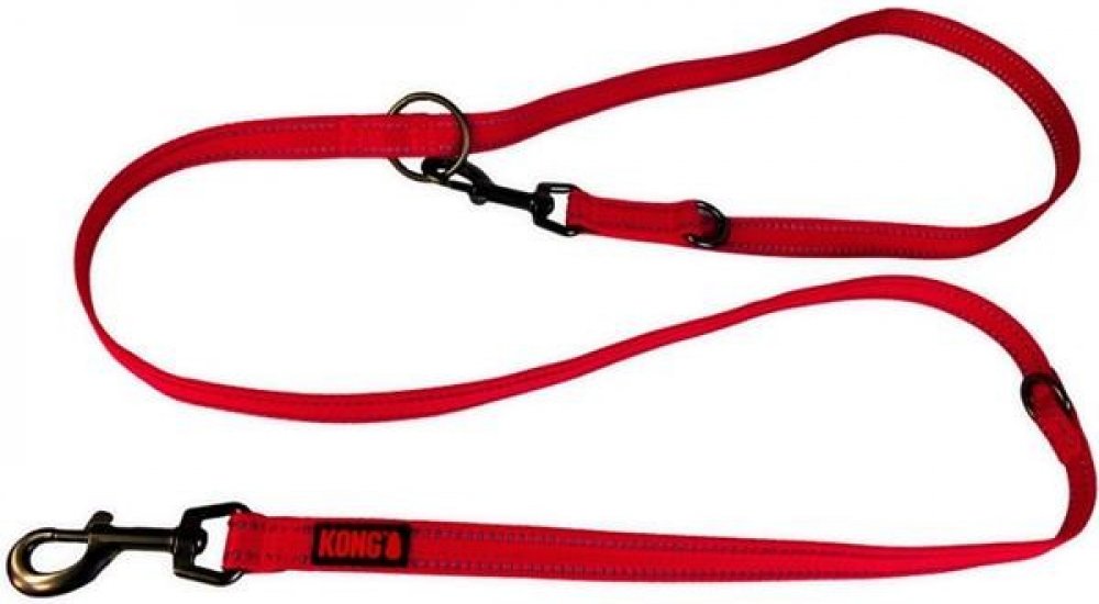 S přepínacím vodítkem KONG z pevného nylonového pásku dvakrát prošitého reflexní nití budete se svým psem nepřehlédnutelní. Systém 5 v 1 umožňuje nastavit vodítko na 3 různé délky, použit jako úvaz, nebo jako rozdvojku.