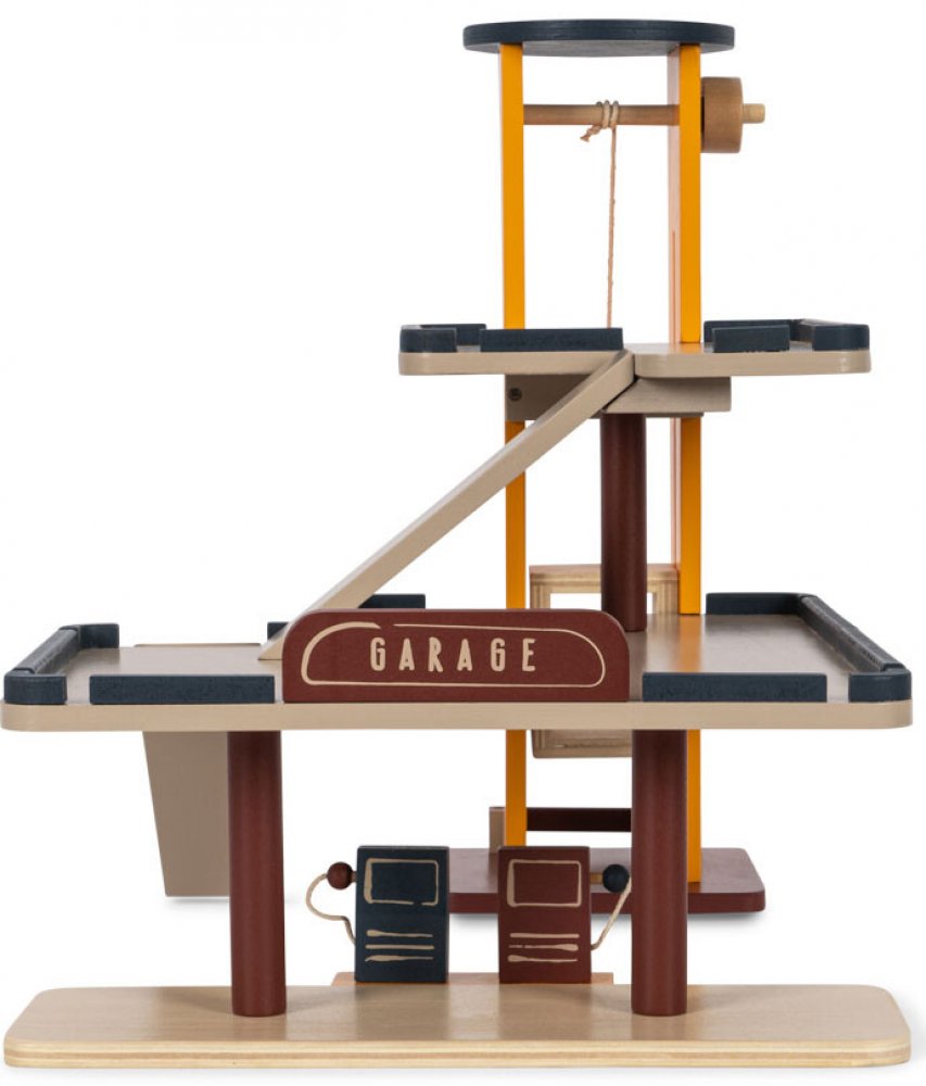 Třípatrová dřevěná garáž se třemi auty včetně.