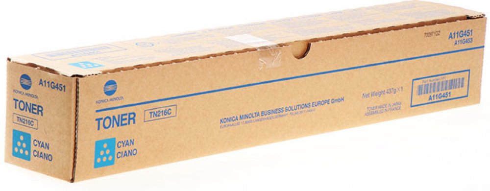 Originální toner Konica Minolta TN-216C (A11G451) pro Bizhub C220 a C280.