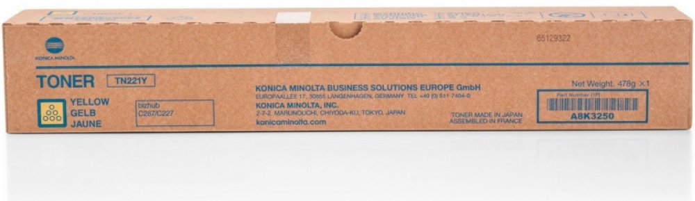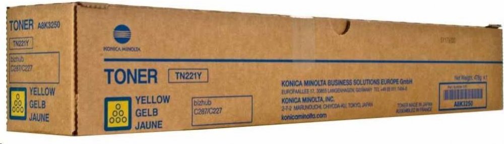 Originální toner, barva žlutá, s originálním označením TN221Y pro tiskárny Konica Minolta zajišťuje ostrý, sytý tisk textů i grafiky. Vysoká k...