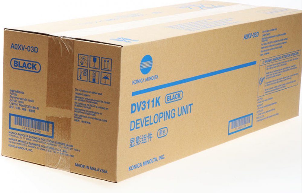Originální Vývojnice Konica Minolta DV-311K (A0XV03D), Vytiskne 570000 stran při 5% pokrytí. Kompatibilní tiskárny: Konica Minolta C220, Konica Minolta Bizhub C360, Konica Minolta Bizhub C280, Konica Minolta Bizhub C220. Barva náplně: černá.