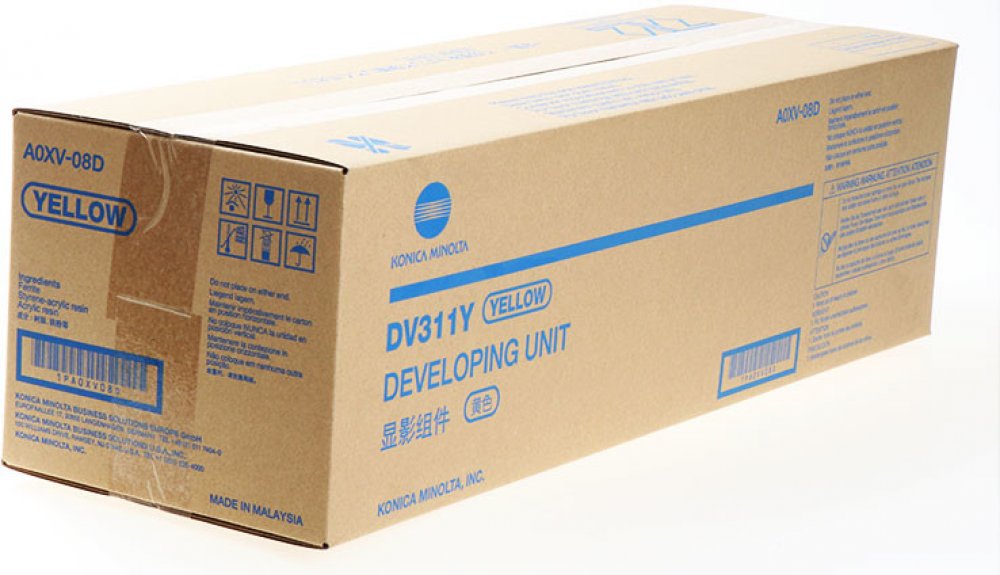 Originální Vývojnice Konica Minolta DV-311Y (A0XV08D), Vytiskne 115000 stran při 5% pokrytí. Kompatibilní tiskárny: Konica Minolta C220, Konica Minolta Bizhub C360, Konica Minolta Bizhub C280, Konica Minolta Bizhub C220. Barva náplně: žlutá.