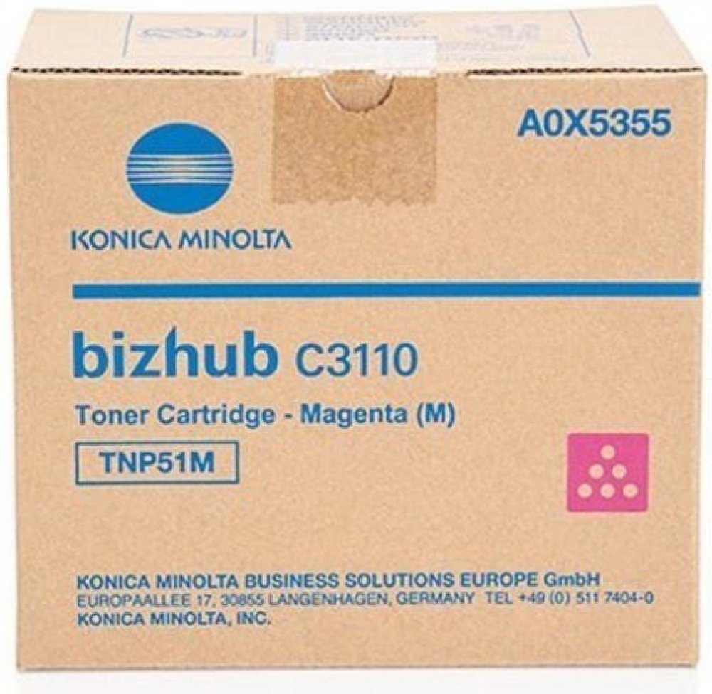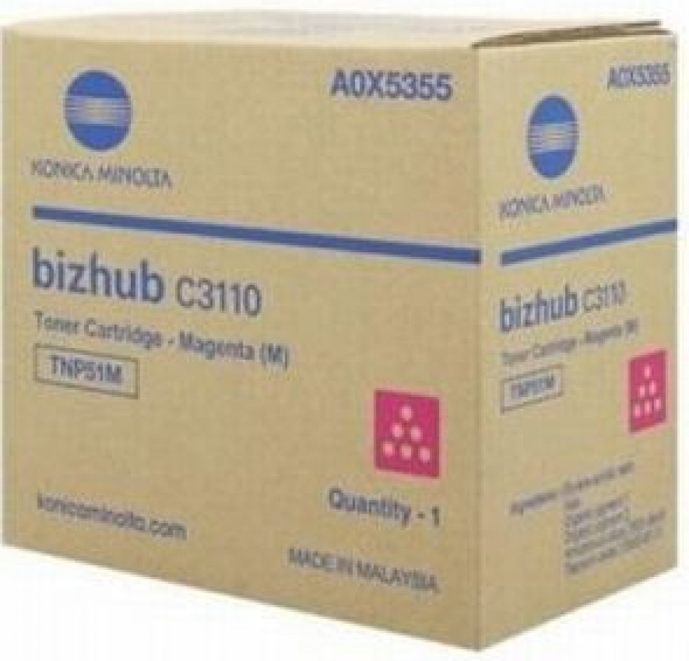 Červená originální tonerová kazeta Konica Minolta A0X5355 určená pro dosažení kvalitního tisku a životnosti tiskárny. Určeno pro tiskárny: Konica Minolta Bizhub C3110. Barva: červená, Kapacita: 5000 stran při 5% pokrytí, OEM: A0X5355
