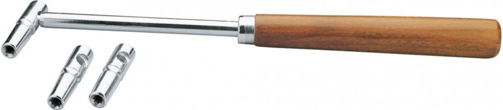 Sada ladicích kladívek K&M 167Sada ladicích kladívek se 3 vložkami! Vlastnosti sady ladicích kladívek K&M 167:3 kónické destičkyHmotnost cca 0,5 kgVložka pro hvězdicový otvor pro klavírní kolíky od 6,5 do 6,9 mmVložka pro hvězdicový otvor pro klavírní kolíky 7,0 až 7,9 mmVložka pro čtvercový kolík pro kolíky 6,2 mmDřevěná rukojeť o délce 18 cmCelková délka cca 34 cm Číslo výrobku: 227664 Typ produktu:Páka na ladění klavíruMateriál:OcelMateriál povrchu:NiklVelikosti klíčů/kapes:5.8,6.5 mmHmotnost:480 g Sada ladících klíčů vhodná pro ladění akustického piana. Sada klíčů obsahuje nástavec a trojici vyměnitelných adaptérů pro pohodlné ladění všech strun akustického klavíru. K dispozici je hvězdicový adaptér s průměrem 5,8 mm, hvězdicový adaptér s průměrem 6,2 mm a čtvercový adaptér s průměrem 6,2 mm. Hmotnost: 0.48 kg. Barevné provedení: Nickel.