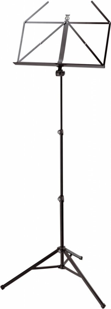 Elegantní notový stojan s troj-sklopným notový pultem, kompaktní design. výška 585/1220cm, notový pult 485 x 240 x 42 mm, váha 1.6kg. Barva: Černá