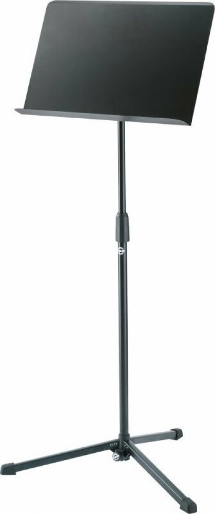 Inovativní stojan pro orchestr s plynule nastavitelnou výškou (třecí zámek). Pro nastavení výšky podpěry od 678 do 1 250 mm se kombinace trubek jednoduše odsune nebo opět zasune. U velkých a těžkých hudebních knih s hmotností nad 2,5 kg lze výšku dodatečně zabezpečit utažením upínací svorky. Velký kovový hudební pult má rozměry 500 x 320 mm a je pokryt robustním texturovaným povrchem. Náklon stolu hudebního stojanu je také plynule nastavitelný a velké pryžové koncovky pohlcující nárazový zvuk zajišťují bezpečnost a stabilitu stojanu. Díky výsuvné konstrukci nohou je stojan ideálně vhodný pro přepravu.