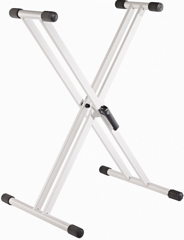 Komfortní a extrémně robustní ocelový X stojan na klávesy »Rick 20«. Ergonomický upínací mechanismus umožňuje rychlé a snadné rozložení a nastavení. Robustní kovový kloub lze nastavit po 5-ti stupňových intervalech a využít tak široké škály pozic. Čtyři protiskluzové gumové koncovky a hloubka 250 mm umožňují použití stojanu pro všechny typy kláves. Výška 594/946 mm. Šířka 327/789 mm. Nosnost 50 kg. Vyrábí se v černé a bílé barvě.