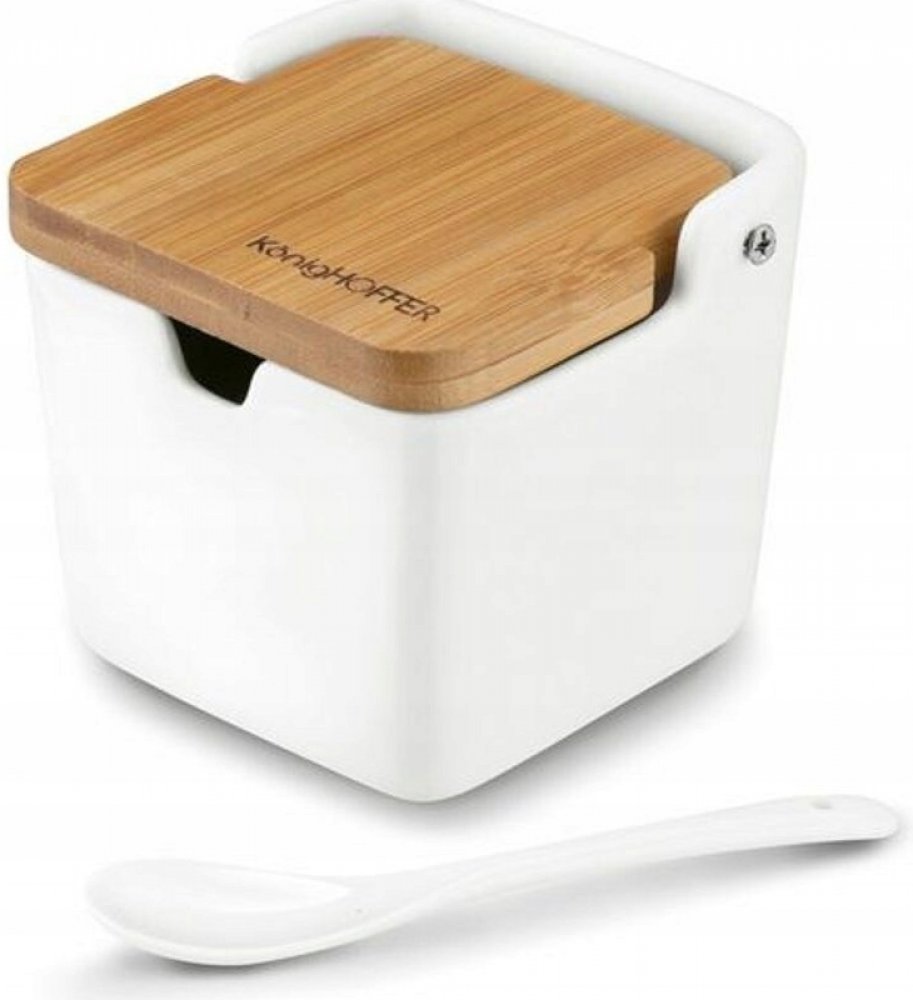 dóza 270ml, bílá porcelán+lžička keram./bambus, KönigH. *PO 15.6._EXTPLASTI