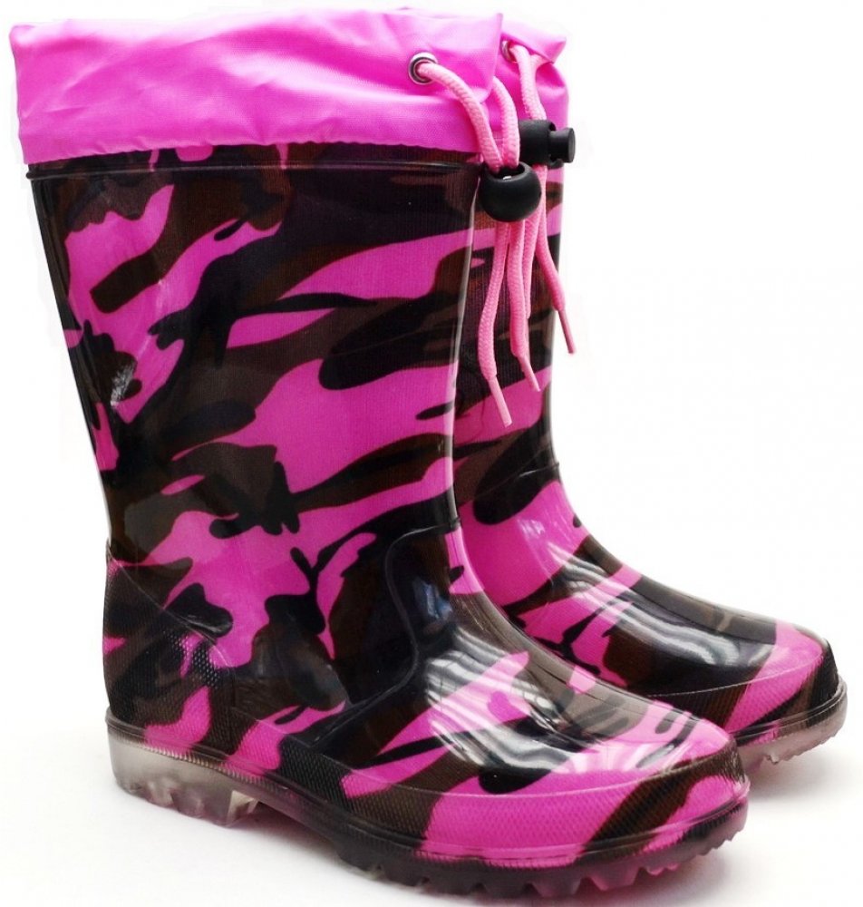 Dětské gumáky - holínky, nahoře se šusťákovým lemováním s možností utažení, aby se dovnitř nedostaly nečistoty či hmyz.
