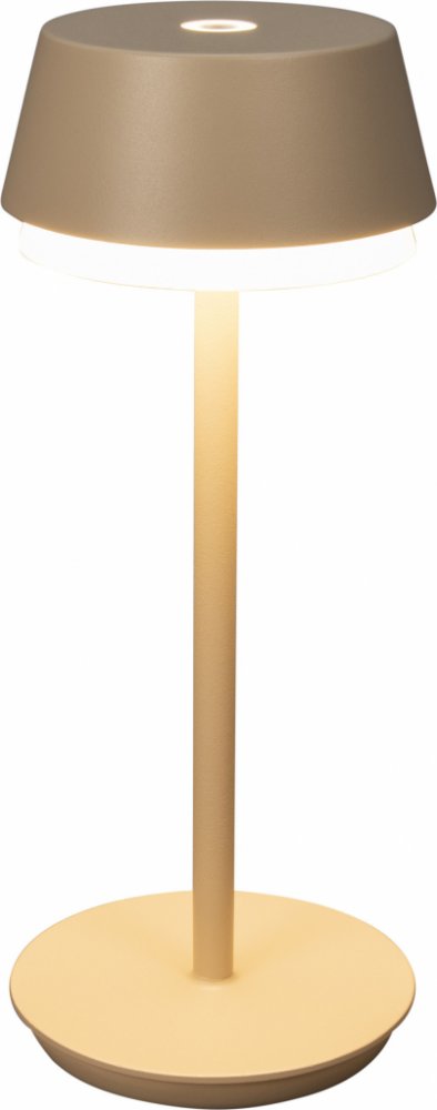 Mobilní - všestranná! Přenosná dobíjecí stolní lampa LYON od společnosti Konstsmide vám nabízí širokou škálu možností. Snadná manipulace: 30 cm vysokou dobíjecí lampu snadno nabijete pomocí nabíjecí stanice s kabelem USB a můžete ji používat všude tam, kde nemáte k dispozici elektrickou přípojku. Doba nabíjení přiložených lithium-iontových baterií je 6 hodin a při plném nabití poskytuje až 9 hodin (při 100 %) světelného požitku. Flexibilitu stolní lampy doplňuje funkce plynulého stmívání od 120 lumenů (100 %) do 10 lumenů (5 %), 3 volitelné teploty barev (2700K, 3000K, 4000K) a dalších 7 barev RGB. To vše lze ovládat pomocí dotykového tlačítka na hlavě lampy. Stolní lampu tak můžete nejen kamkoli umístit, ale také měnit a přizpůsobovat světelnou náladu podle potřeby. Moderní design lampy napájené bateriemi se díky krytí IP54 skvěle vyjímá v interiéru i exteriéru! Jednoduchý design v pískových barvách harmonicky ladí s různými styly vybavení a vytváří příjemnou atmosféru. Ideální společník pro dlouhé letní večery na terase, balkoně nebo v zimní zahradě a obývacím pokoji. Pevně instalovaný LED modul má výkon 2,5 W, max. 120 lumenů a s teplotou až 4000 Kelvinů poskytuje krásné osvětlení pro příští zahradní párty! Stolní LED lampa Lyon USB sandNastavitelná barva - 3 x bílá 2700/3000/4000K+7xRGBplynule stmívatelná 10-120lmvysoce kvalitní povrchová úprava - hliníkvýkonná baterie 2x1500mAhOdolnost proti povětrnostním vlivům IP54S nabíjecí stanicí Důmyslná stolní LED lampa do interiéru i exteriéru - "Lyon" je ideální lampou pro všechny svobodomyslné lidi, kteří si chtějí užít příjemné hodiny v obývacím pokoji i společenské večery na terase. Kompaktní LED dobíjecí stolní lampa z hliníku a plastu je vhodná do interiéru i exteriéru (IP 54) a díky výkonnému li-ion akumulátoru ji lze používat nezávisle na elektrické zásuvce. Ať už se jedná o teplou bílou, extra teplou bílou, neutrální bílou nebo RGB - ploché a neoslňující vyzařování světla zajišťuje příjemné osvětlení. Jas (10-120 lm) a barvu světla lze snadno nastavit pomocí dotykového stmívače. Stolní lampa s vestavěným světelným zdrojem LED (2,5 W, životnost cca 20 000 h) se dobíjí pomocí dodávané kontaktní nabíjecí stanice s připojením USB. V 30 x Ø 12 cm.