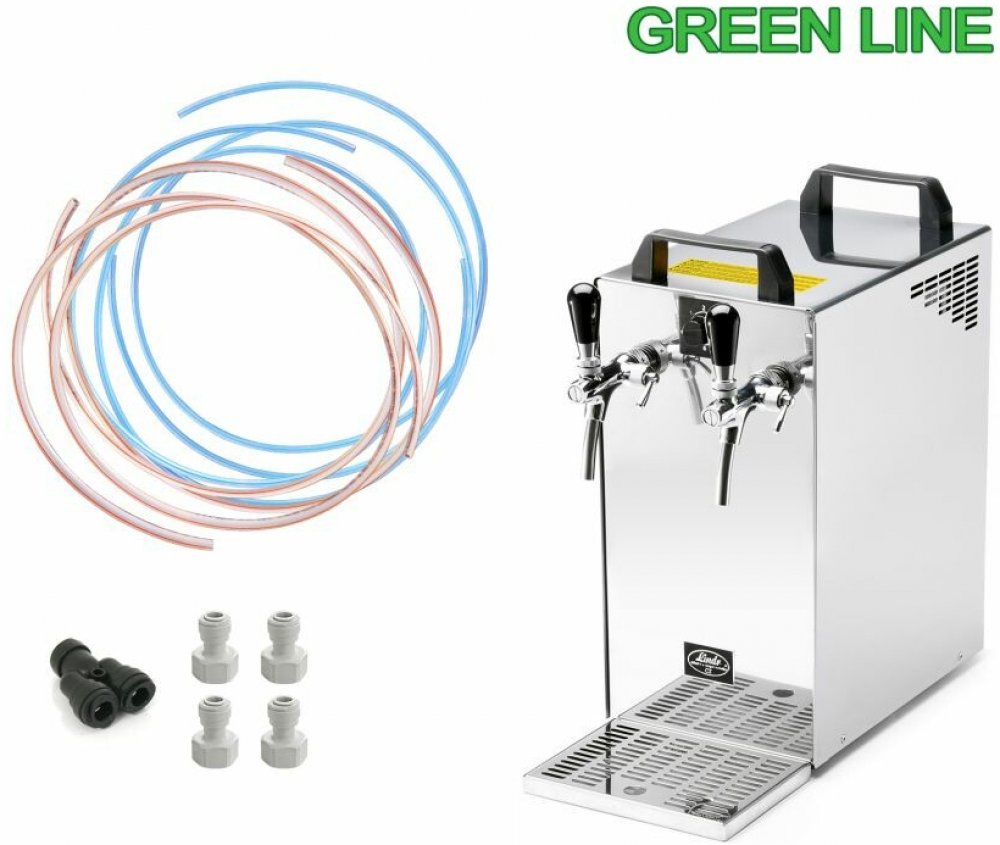 Pro výčepní zařízení KONTAKT 40/K NEW GREEN LINE s vestavěným kompresorem jsme použili to nejlepší z ostatních chladičů - kompaktnost a optimální rozměry řady PYGMY a výkon s technologiemi velkých profesionálních restauračních a hospodských chladičů. Díky tomu můžeme nabízet chladič, který hravě zvládne menší restaurační provoz a zároveň splní ty úplně nejnáročnější požadavky pro domácí chlazení, čepování a podávání kvalitně vychlazeného piva a dalších nápojů. Varianta s dvěma kohouty umožňuje chladič po...