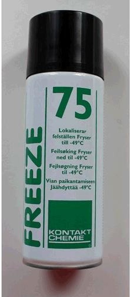Nevodivý mrazící sprej. Okamžitě ochladí obvody až na –49 °C. Prudkým schlazením lehce udusíme případné zkraty nebo přerušení součástek obsazených na desce s plošnými spoji. Vhodný i na odstraňování žvýkaček z textilu.