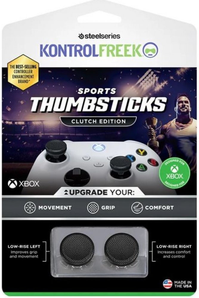Úchyty pro thumbsticky Kontrol Freek pro Xbox One a Xbox Series X|S Úchyty pro palcové páčky Kontrol Freek pro ovladače Xbox One a Xbox Series X|S zlepšují úchop, kontrolu a pohodlí během hraní. Tyto krytky pro palce se montují přímo na analogové páčky a pomáhají snižovat jejich sklouzávání během rychlého nebo soutěžního hraní. Texturovaný povrch umožňuje konzistentnější pohyb palce a lepší kontrolu nad mířením a nastavením kamery, což pomáhá zlepšit přesnost bez nutnosti úpravy ovladače. Zlepšená přilnavost: Texturovaný gumový povrch zlepšuje trakci a snižuje prokluzování. Lepší ovládání: Podporuje přesné a stabilní pohyby palce, zejména v akčních a střílečkových hrách. Design zaměřený na pohodlí: Pomáhá snižovat únavu prstů během dlouhých herních sezení. Odolný materiál: Vyrobeno z vysoce kvalitní gumy pro dlouhodobé používání. Snadná instalace: Zacvakávací konstrukce bez nutnosti použití nářadí nebo trvalých úprav.