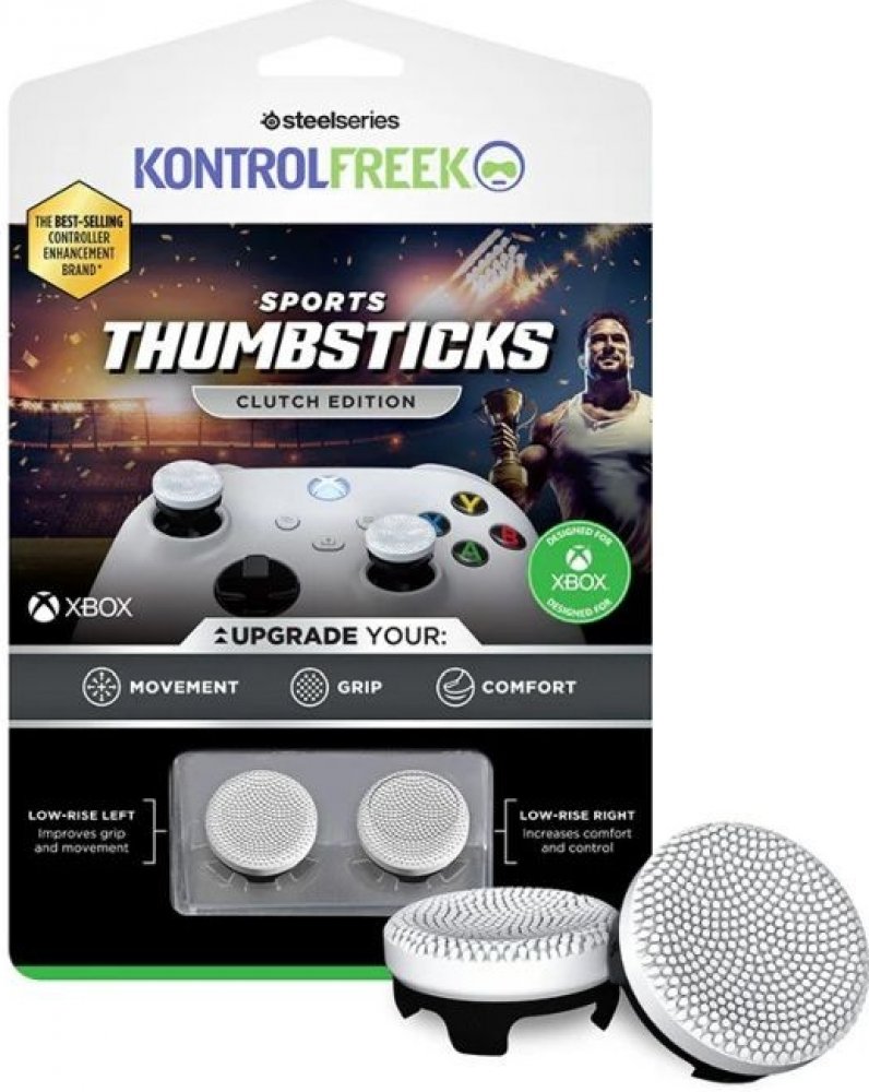 Úchyty pro thumbsticky Kontrol Freek pro Xbox One a Xbox Series X|S Úchyty pro palcové páčky Kontrol Freek pro ovladače Xbox One a Xbox Series X|S zlepšují úchop, kontrolu a pohodlí během hraní. Tyto krytky pro palce se montují přímo na analogové páčky a pomáhají snižovat jejich sklouzávání během rychlého nebo soutěžního hraní. Texturovaný povrch umožňuje konzistentnější pohyb palce a lepší kontrolu nad mířením a nastavením kamery, což pomáhá zlepšit přesnost bez nutnosti úpravy ovladače. Zlepšená přilnavost: Texturovaný gumový povrch zlepšuje trakci a snižuje prokluzování. Lepší ovládání: Podporuje přesné a stabilní pohyby palce, zejména v akčních a střílečkových hrách. Design zaměřený na pohodlí: Pomáhá snižovat únavu prstů během dlouhých herních sezení. Odolný materiál: Vyrobeno z vysoce kvalitní gumy pro dlouhodobé používání. Snadná instalace: Zacvakávací konstrukce bez nutnosti použití nářadí nebo trvalých úprav.