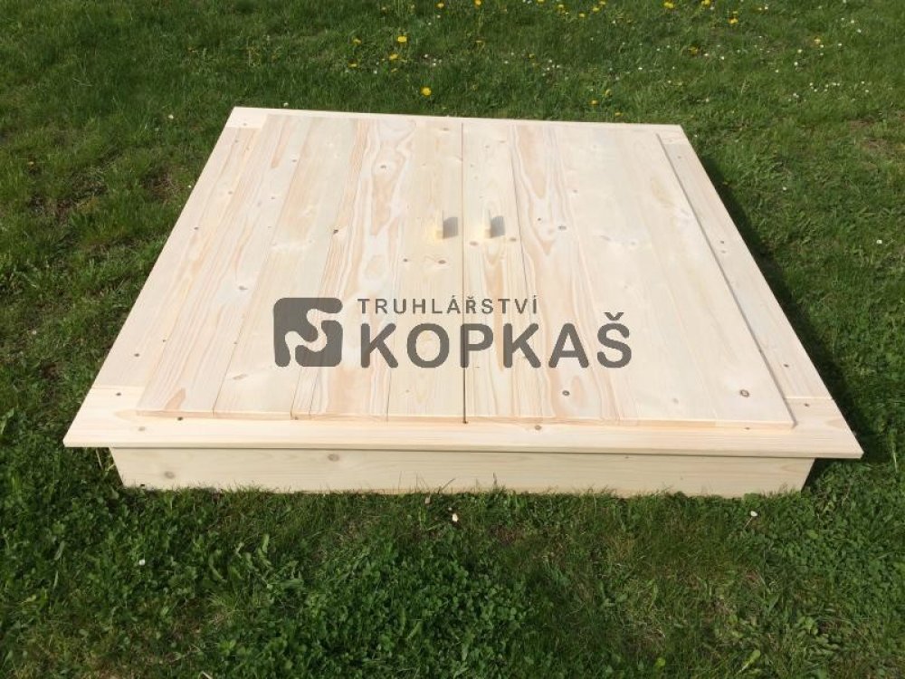 Dřevěné dětské pískoviště je vyrobené z prken o síle 2 cm. Součástí pískoviště je také víko, které ochrání písek před nechtěnými návštěvníky jako jsou psi nebo kočky. Rozměry pískoviště jsou 150 x 150 cm, vejde se tak do jakékoliv zahrady nabo dvora.