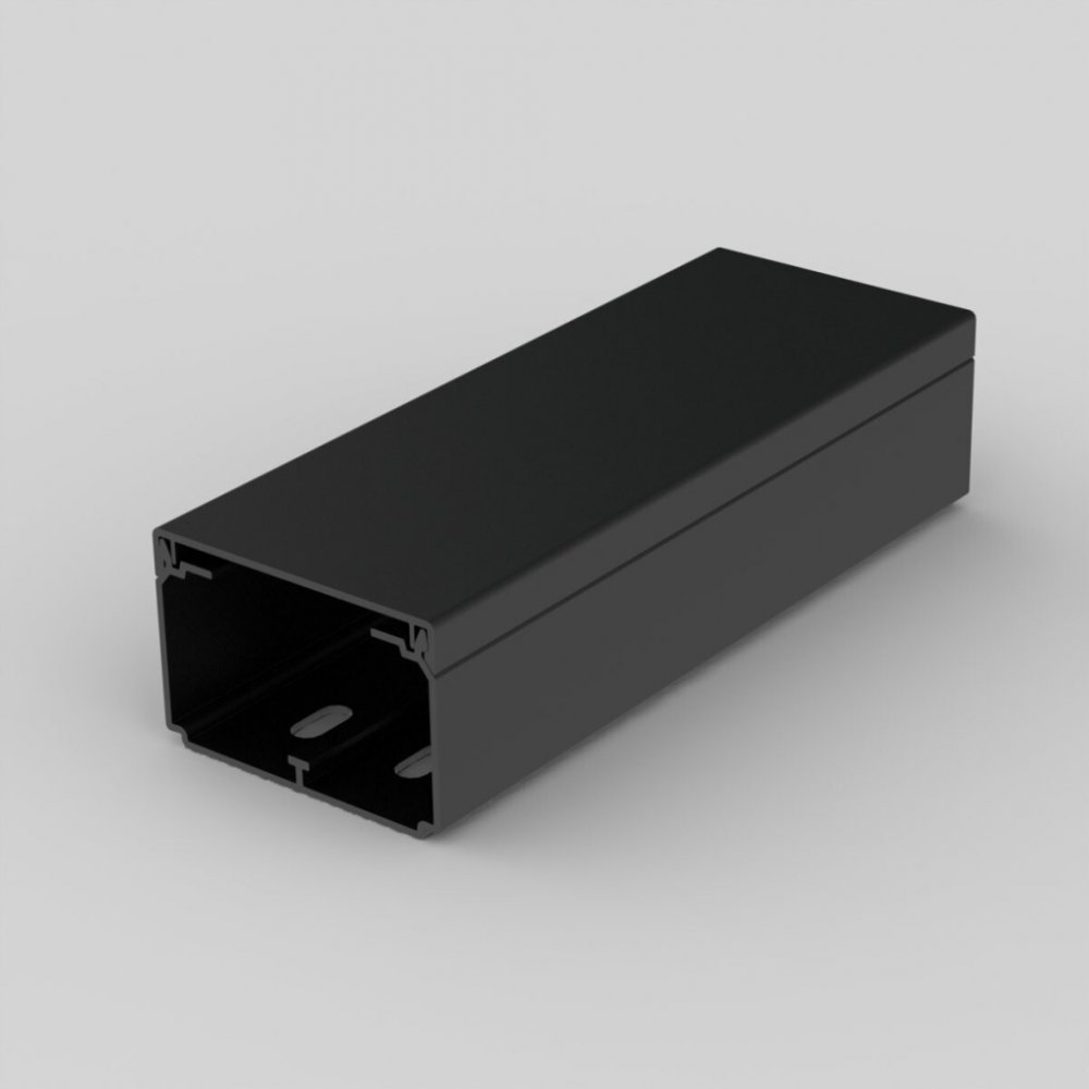 Lišta hranatá LH 60x40, černá, 2 m, karton. Klasický tvar. Určena pro montáž na stěnu, nebo na strop. Dvojitý zámek víka zvyšuje tuhost lišty a zajišťuje pevnější fixaci víka.