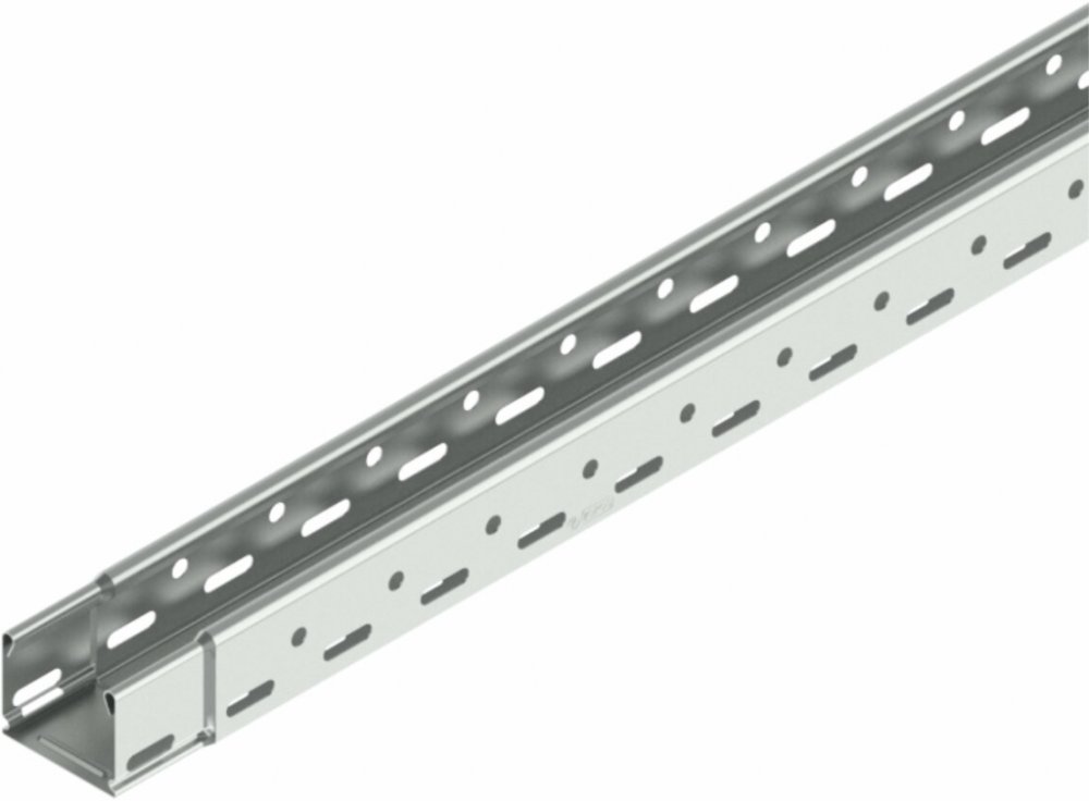 Kabelový žlab s integrovanou spojkou NKZI 50x62 z plechu tloušťky 0,70 mm v povrchové úpravě žárový zinek, děrovaný, opatřený embosy pro zvýšení pevnosti a tuhosti.