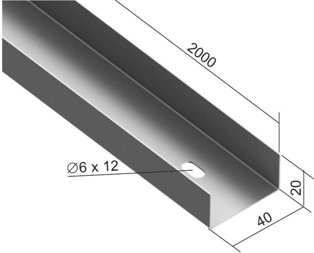 Standardní délka žlabu je 2 m. Spojení žlabů se provádí pomocí spojky NS 40 a dvou šroubů NSMP 5X10. EAN kód 8595057687196 Celní kód 73089059 Hmotnost 0,40 kg/m Povrchová úprava pozinkováno Sendzimirovou metodou Teplotní odolnost -50 - 150 °C Šířka 40 mm Výška 20 mm Délka 2000 mm Odpovídá normám ČSN EN 61537 Tloušťka plechu 0,7 mm Počet šroubů pro spojení 2