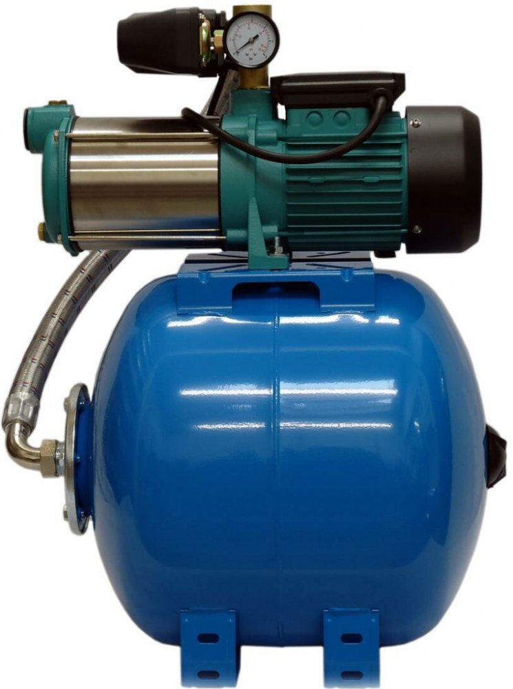 Domácí vodárna MH 1300 / 35L (400V) AQUASYSTEM Vícestupňová samonasávací čerpadla a vodárny řady MH jsou určena pro zásobování čistou vodou bez mechanických nečistot ze studní u rodinných domků, chat, chalup apod., kdy hladina vody od čerpadla resp. vodárny nepřesahuje max. sací výšku tzn. 8 m. Čerpadla řady MH jsou jištěna termickou ochranou zabudovanou ve vinutí motoru a vyznačují se především tichostí (78 dB) a spolehlivostí chodu. Domácí vodárny řady MH se skládají z těchto komponentů: a) čerpací soustrojí sestávající z čerpadla a elektromotoru: MH 1300 b) tlaková nádoba s pryžovým vakem EPDM o obsahu 24, 35, 50, 60, 80, 100 případně 150 l c) tlakový spínač seřiditelný pro tlakové rozpětí 1 - 5 bar d) pěticestná armatura e) manometr f) flexi tlaková hadice o délce 500 mm, 600 mm, 700 mm nebo 800 mm g) síťový kabel 2 m včetně zástrčky