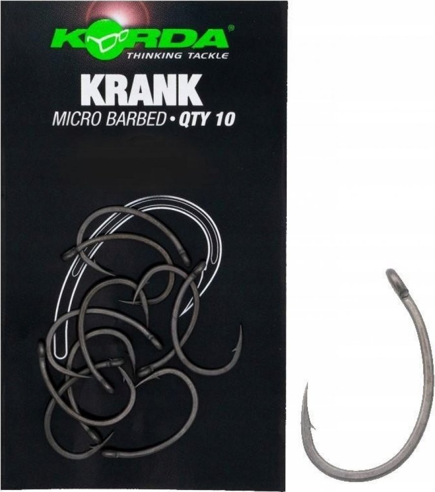 Tvůrcem těchto háčků je konzultant firmy Korda Tom Dove, který chtěl vytvořit háček s extra širokým tvarem, který by měl ale stejně agresivní vlastnosti při zasekávání jako háček Kurv Shank. K tomu se přidal jemně zakroucený hrot směrem dovnitř háčku a tvar háčku Krank byl na světě. Háček, který je nejvíce účinný s maximálně jednoduchým bezuzlovým vázáním!