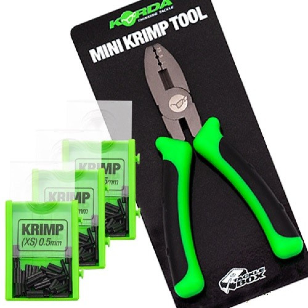 Krimpovací kleště KORDA Mini Crimp Tool - krimpování je skvělý způsob, jak dosáhnout extrémně pevných a vizuálně skvěle vypadajících montáží, zvláště když používáte tužší, nebo silnější návazcové materiály, které lze jen obtížně navázat - navíc vám umožňuje vždy vytvořit na centimetr přesné montáže, což je zvláště užitečné pro chod návazce.