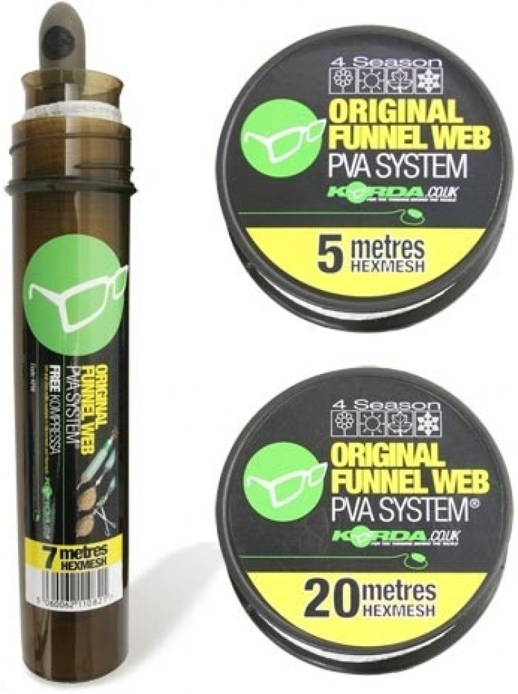 Vysoce kvalitní rozpustná punčocha Korda Funnel Web PVA System 35mmKorda Funnel Web PVA System - Originální PVA systém. Kvalitní rozpustná punčocha na plnícím tubusuMůžete si vyrábět návnadové balíčky bez jakéhokoli plýtvání punčochou. Systém je uzavřen v dokonale utěsněné tubě.Pro tuto sezónu společnost Korda přepracovala jejich unikátní systém rozpustných punčoch. Tubusy jsou nyní menší, v kapra...