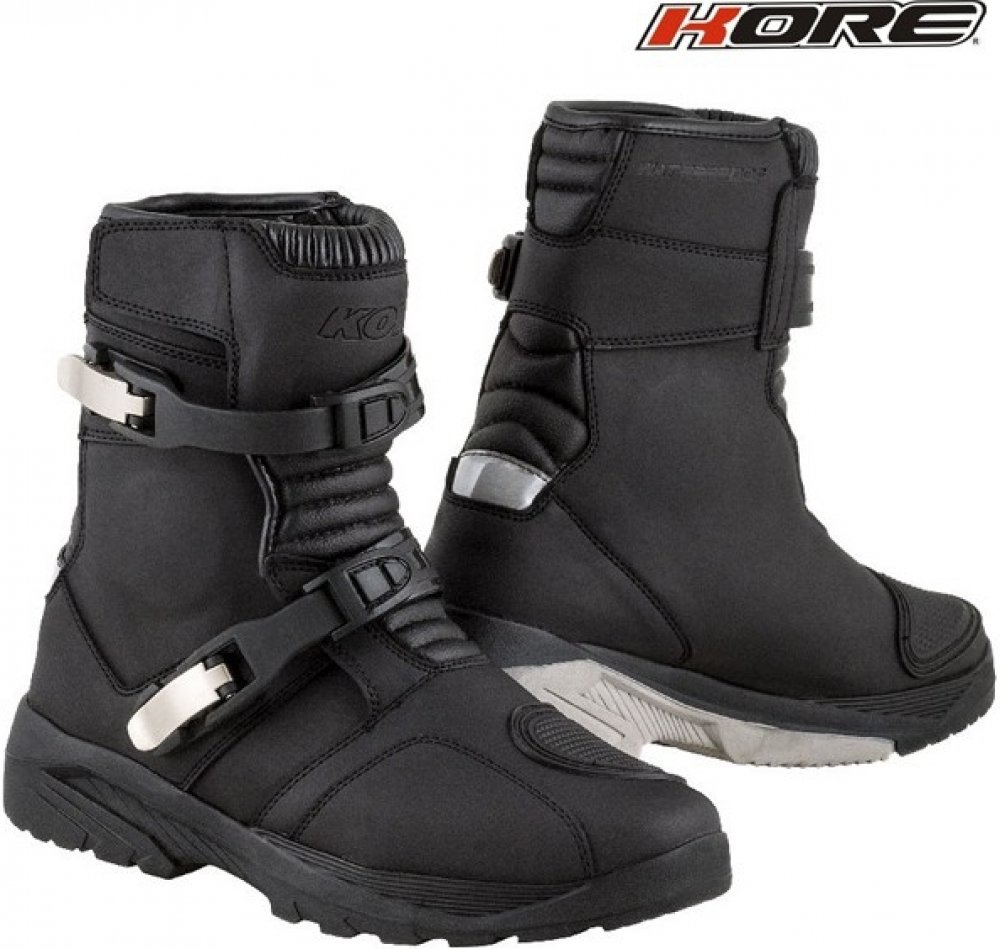 Moto boty KORE Adventure Mid jsou ideálním moto vybavením do terénu a na čtyřkolku. Zaručují maximální pohodlí a stabilitu nohou s prodyšnou, avšak voděodolnou podšívkou. Komfort je navíc podpořen termo vložkou, která pefektně odvádí pot. Pro vyšší bezpečnost je bota vyztužena v místě řadící páky a navíc disponuje i reflexní částí nad patou. Budete tak lépe viditelní i za zhoršených světelných pod...