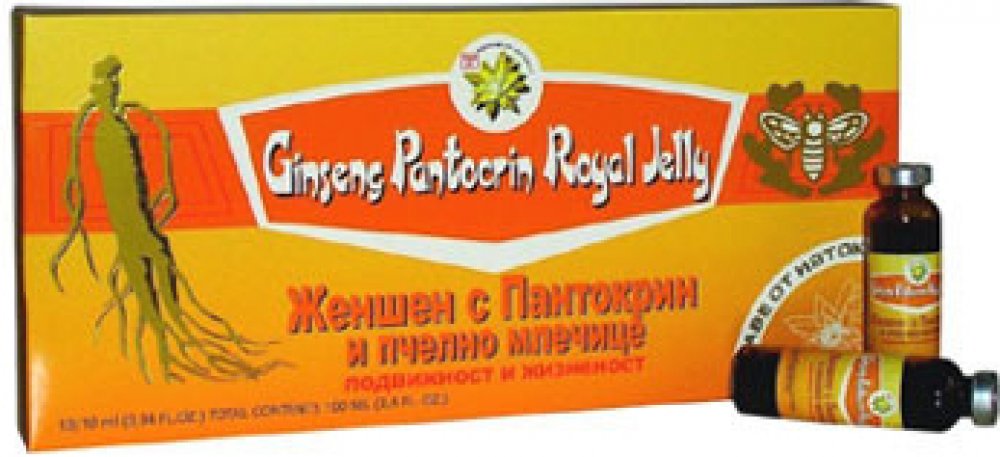 Složení: extrakt ženšenu 200 mg, mateří kašička 300 mg, extrakt pantokrinu 100 mg, med,destilovaná voda