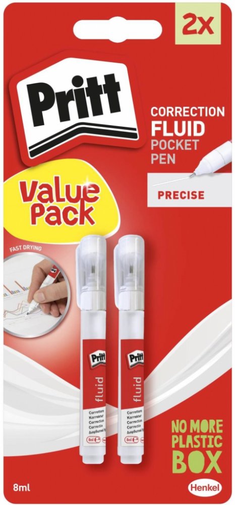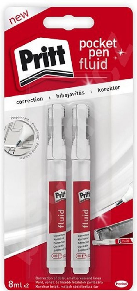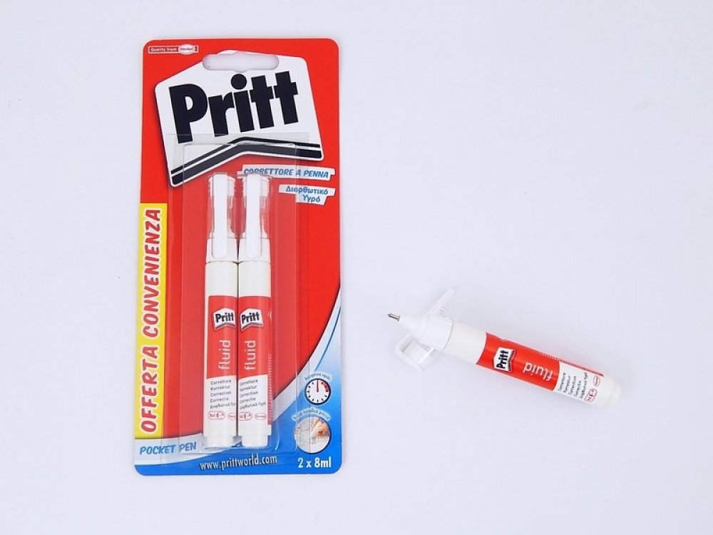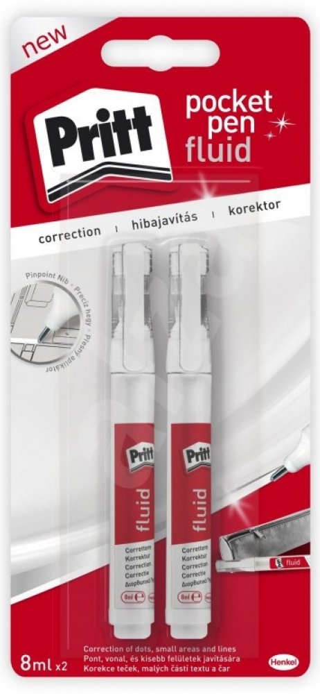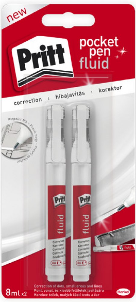 PRITT® Korekční pero Pocket Pen s kovovým hrotem pro přesnou korekci textu. Obsahuje rychleschnoucí korekční lak s vynikající kryvostí. Ergonomický tvar umožňuje pohodlnou aplikaci a přesné dávkování. Nezanechává stopy ani stíny nafotokopii.