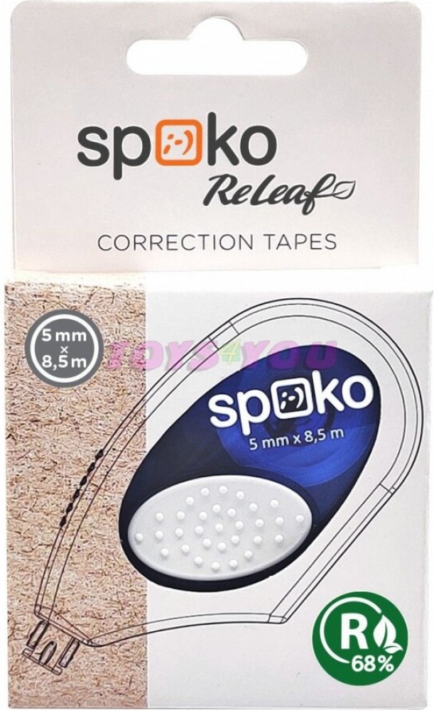 Spoko ReLeaf je nová řada produktů značky Spoko, která přistupuje zodpovědně k životnímu prostředí. Při výrobě korekčních strojků využívá převážně recyklované materiály, částečně pocházející z oceánského odpadu. Díky tomu splňují certifikaci Ocean Bound Plastic a Global Recycled Standard. Jednotný design balení usnadňuje identifikaci produktů Spoko ReLeaf mezi ostatními výrobky Spoko.