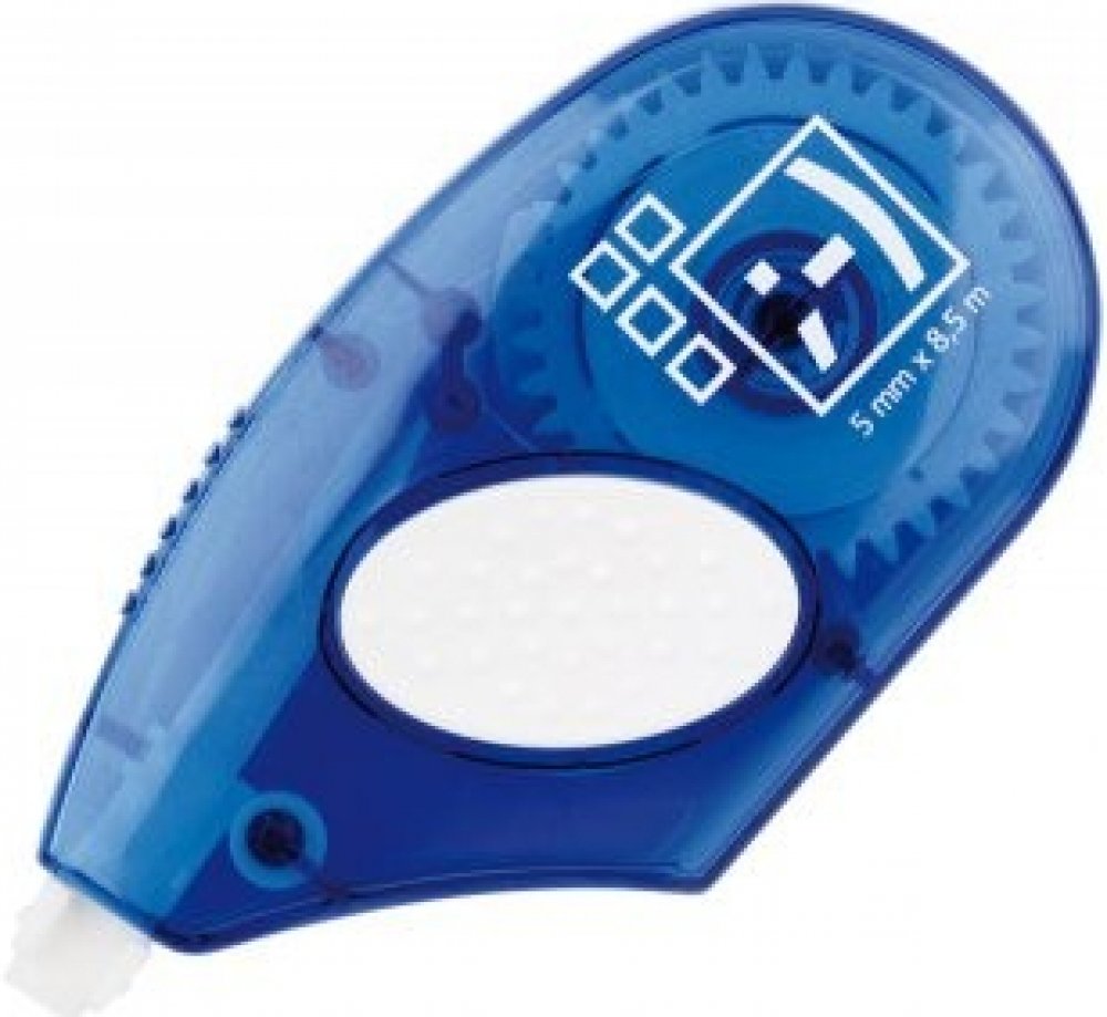 Inovovaná verze jednorázového korekčního strojku s bočním odvinem pásky, jehož tělo obsahuje 68 % recyklovaného plastu. Protiskluzové plochy garantují pohodlné držení. Korekce za sucha umožňuje okamžité přepsání. Nezanechává stopy na fotokopiích. Jednoduché a rychlé použití, čistá a suchá korekce. Tištěné logo na těle.