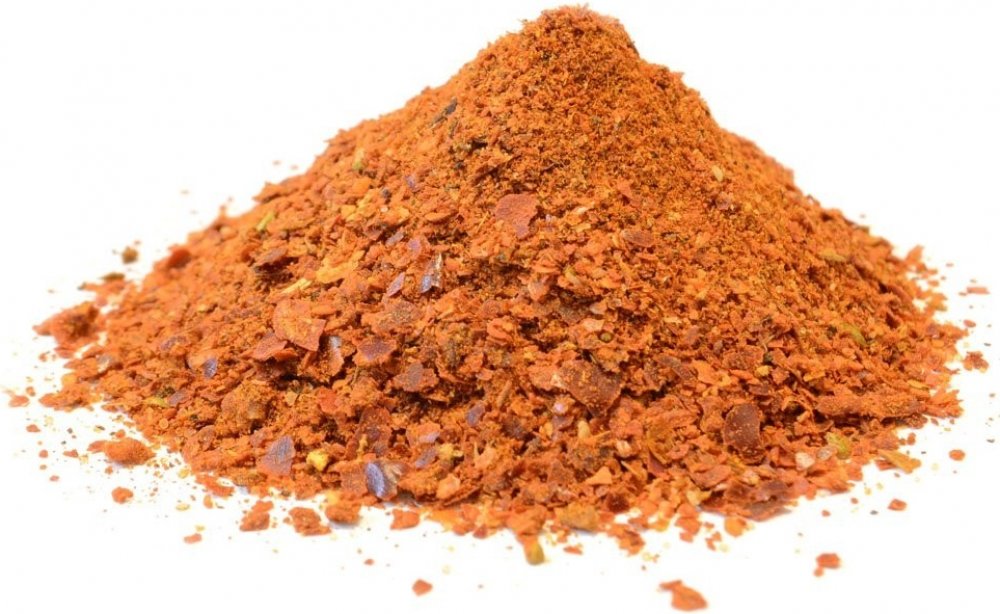 Složení: mořská sůl jemná max.10%, chilli vločky, paprika sladká, kmín římský, paprika ostrá, pepř černý, česnek, cibule, paprika vločky, oregano.