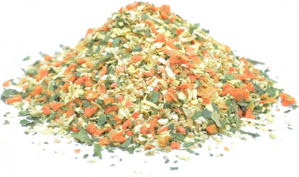 Složení: mrkev, cibule granulovaná, kurkuma, sušená zelenina (karotka, petržel, CELER), petržel list, libeček, CELER NAŤ.