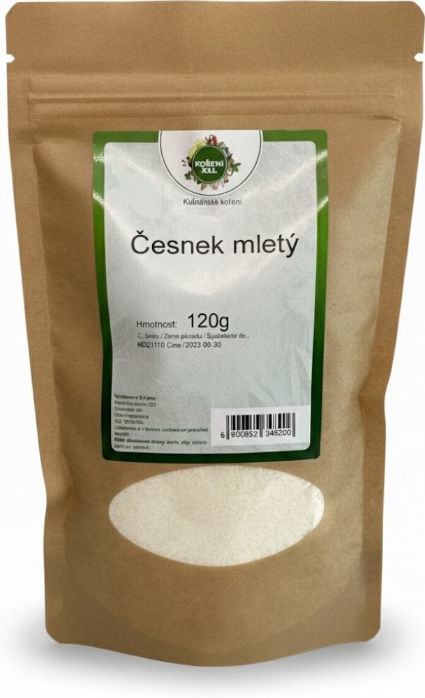 Mletý sušený česnek je nejjemnější a nejsnáze dávkovatelná forma česneku v sortimentu. Díky konzistenci jemného prášku se okamžitě rozpouští a rovnoměrně rozptyluje i v těch nejhladších omáčkách, dresincích nebo těstách. Je nepostradatelný, pokud potřebujete silnou česnekovou chuť a dokonalou texturu bez viditelných nebo hmatatelných kousků (na rozdíl od granulátu nebo plátků).