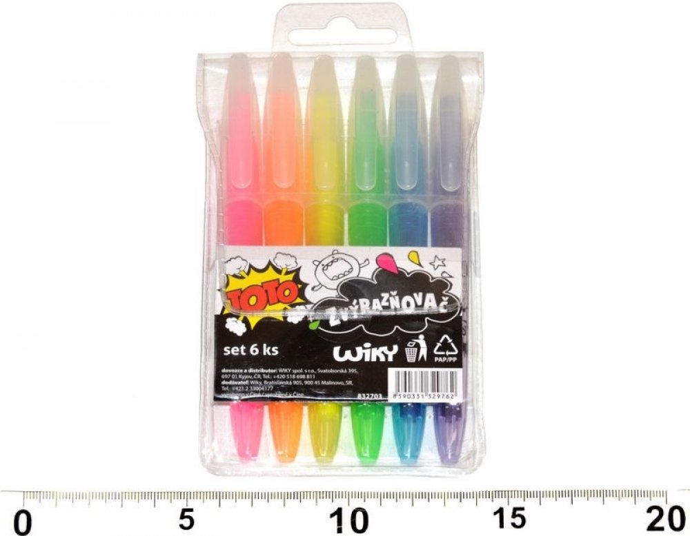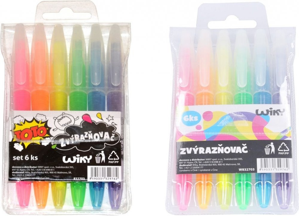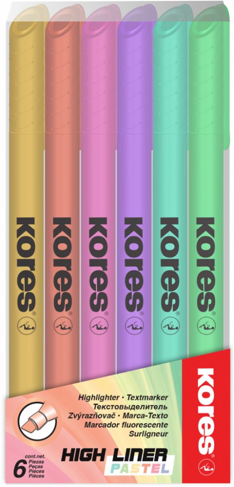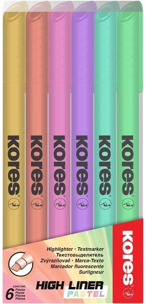 • 6 barev (růžová, oranžová, žlutá, zelená, modrá, fialová) Sada barevných zvýrazňovačů je praktickou pomůckou jak do kanceláře, tak i do školy. Určené pro zvýraznění textů na všech druzích papíru.