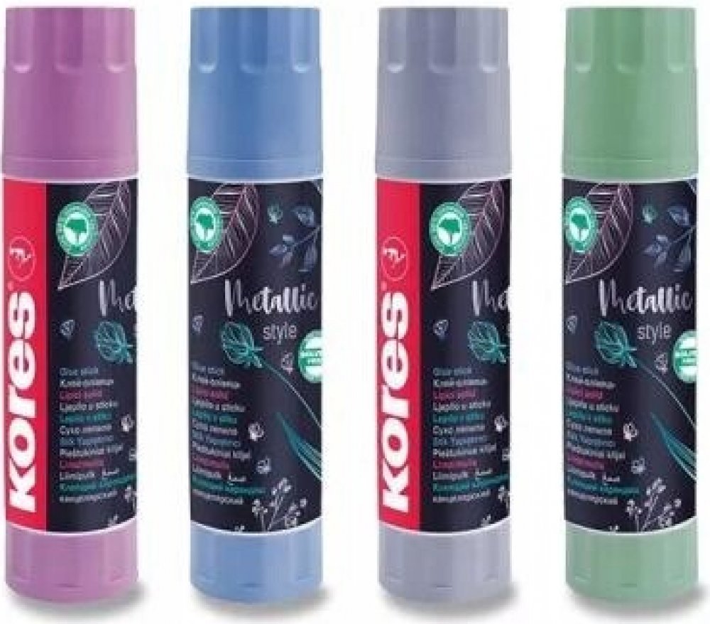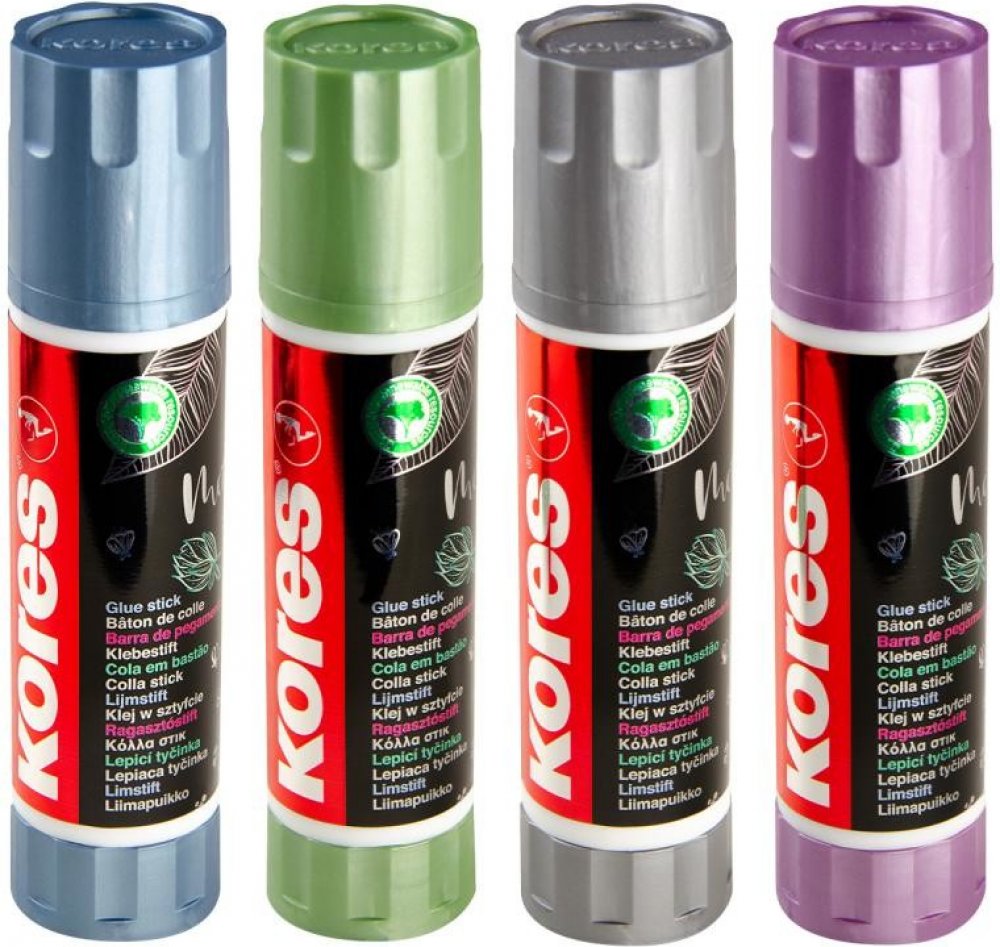 Podrobnosti o produktu EUR0545791 Standardní Kores bílá lepicí tyčinka z designová edice ve čtyřech metalických barvách. Obsahuje glycerin pro jemné lepení, čistá a hladká aplikace, vhodná pro všechny druhy papíru. Lepí trvale za 60 sekund. Ideální pro použití doma, v kanceláři i ve škole. Bez možnosti výběru barvy. Vyrobeno v ČR
