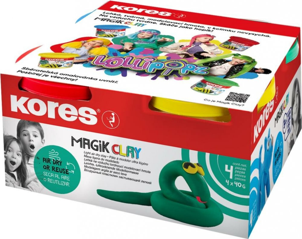 Seznamte se s novou kolekcí Kores ♥ Lollipopz Modelovací hmota Kores Magik Clay Pastel Lollipopz, 4x 40 gPomocník pro kreativní tvořeníHledáte zábavné a rozvojové aktivity pro své děti? Modelovací hmota Kores Magik Clay Pastel LOLLIPOPZ by mohla být skvělou volbou. Modelovací hmota nejenže rozvíjí fantazii dětí, ale také cvičí jemnou motoriku a přesnost jejich pohybů. Lehce tvarovatelná hmota je ...