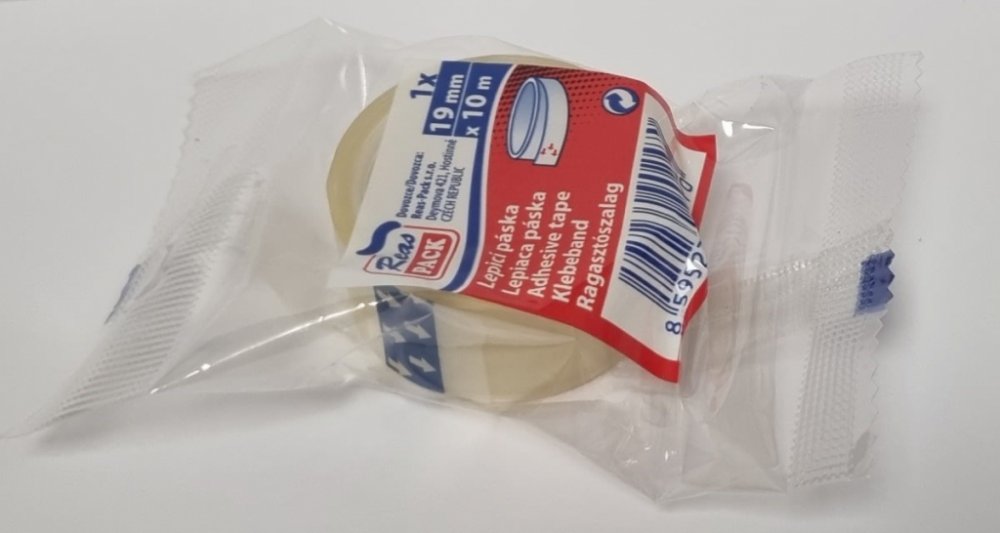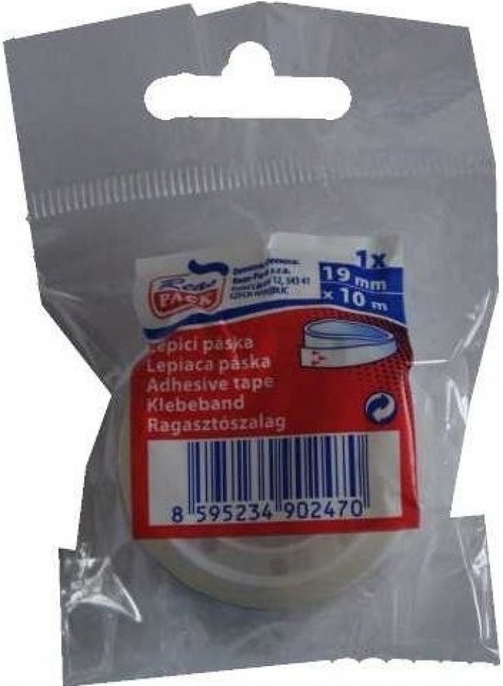 *kvalitní kancelářská lepicí páska transparentní*rozměr 19 mm x 10 m*materiál polypropylen*akrylátové lepidlo*tloušťka 38 my*balení po 1 ks v sáčku s EAN šíře pásky: 19 mm