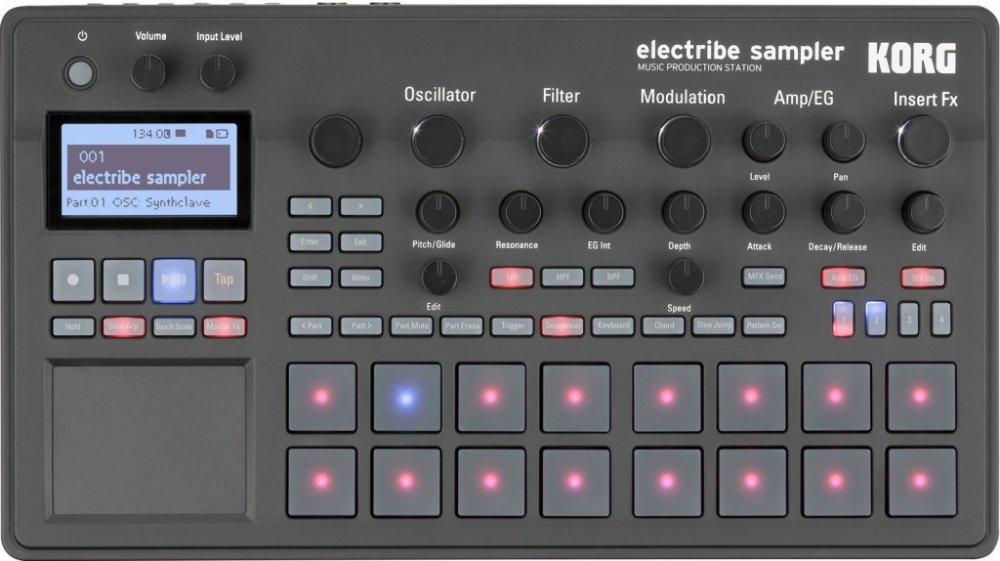 Hudební produkční stanice Electribe Sampler - samplování na úrovniSérie Electribe umožnuje přehrávat předem detailně připravené paterny, které přitom můžete okořenit a oživit pomocí různých, zcela intuitivně ovládaných funkcí. Zhruba deset let po představení modelu Electribe SX je nyní v sérii electribe nový sampler, navržený tak, aby ho rychle pochopili začátečníci a současně přinesl spoustu zajímavých možností i zkušeným uživatelům této série. Electribe je ideální jak pro hudební produkci, tak i pro živá vystoupení. Electribe sampler je vybaven nejnovější technologií KORGNový Electribe sampler přebírá špičkové technologie z takových úspěšných modelů, jako jsou KingKORG, Kaossilator, Kaoss Pad nebo Taktile. Do vnitřní paměti lze uložit 250 paternů, včetně presetových paternů které jsou ideální pro dnešní taneční hudební scénu. Najdete tu také podporu polyfonického playbacku, která je nezbytná u komplexních hudebních stylů, jako je třeba house music. Krokový (step) sekvencerPomocí 16 padů, umístěných na čelním panelu, můžete zcela intuitivně a za současného poslechu vytvářet originální paterny. Tyto pady můžete používat jednak jako klávesnici k nahrávání frází v reálném čase, nebo naopak s nimi krok za krokem zadávat jednotlivé noty. Paterny, které takto vytvoříte, pak můžete různě modifikovat, a to třeba prostřednictvím funkce „step jump“, převzaté ze série Volca, nebo změnou parametru „last step“ upravit délku jednotlivých partů a podobně. Funkce „motion sequence" umožňuje zachytit pohyb ovládacích prvků a tlačítek a zaznamenat je do paternu, který právě vytváříte. Ke každému z 16 padů můžete přiřadit jak zvuky syntezátorů, tak třeba i bicí. Pro vytvoření skutečně komplexní rytmiky tedy můžete třeba všem padům přiřadit různé zvuky bicích. Intuitivní tvorba beatů pomocí Trigger padů a Touch paduZ modelu Kaossilator dobře známá funkce „touch scale“ umožňuje každému hrát bez falešných not, stačí jen pohybovat prsty přes touch pad. K dispozici jsou dále také trigger pady, které si získaly popularitu u modelu Taktile a které slouží k jednoduché tvorbě hudebních frází, navíc je lze použít třeba při programování bicích. Nastavením lze u těchto padů zapnout nebo vypnout dotykovou citlivost (dynamiku). Hybridní syntezátorový engine s možností samplování a modulaceKORG vybavil Electribe Sampler takovým syntezátorovým engine, který pomůže maximalizovat hudební kreativitu hráče.Vedle zvukového engine, využívajícího vaše vlastní a unikátní zvuky (samply), je tu navíc několik typů analog modelujících zvukových enginů, které využijete například při tvorbě syntezátorových basů. Využívat můžete až 999 presetových nebo vlastních samplů, maximální délka samplování (při mono samplování) je 270 vteřin. Už při dodání je nástroj vybaven pestrou kolekcí rytmických frází a smyček, bicích a jiných samplů (včetně výsledků vzájemné spolupráce se Sample Magic, Loopmasters, Prime Loops). Modulace zvuku může být někdy dost komplikovaná, my jsme ji však zjednodušili rozdělením na tři hlavní parametry: jednoduše vyberete určitý vzor, který specifikuje některý z efektů a cíl tohoto efektu, a u tohoto vzoru pak podle vašich potřeb dále upravujete rychlost a rozsah efektu. Pokročilé možnosti využití samplů díky Time Slice a Resampling funkciFunkce „Time Slice“ umí rozdělit hudební frázi na dílčí fragmenty, takže při následném přehrávání této fráze v jiném tempu nedojde v podstatě ke změnám jejího zvuku. Zvuk těchto dílčích fragmentů lze navíc použít samostatně, kdy jej kupříkladu lze přiřadit k některým z kroků nebo partů. U samplů můžete navíc aplikovat i některý z efektů a pak to celé resamplovat, kdy během tohoto opětovného samplování lze navíc pomocí tlačítek měnit výšku tónu či modulaci. Ještě širší tvůrčí potenciál: vzorové efekty a GrooveNový Electribe Sampler nabízí pro každý z partů různé efekty jako je komprese (compression) či overdrive, díky čemuž budete mít nad výsledným zvukem opravdu důslednou kontrolu do těch nejmenších detailů. U každého partu lze navíc pomocí přednastavených vzorů jednoduše aplikovat funkci groove. Nové funkce pro živá vystoupení: Master efekty, Pattern sety, Sync in/outMaster efekty lze podobně jako u modelu Kaoss Pad ovládat přes touch pad, navíc zde najdete naprosto specifické efekty jako třeba „Vinyl Break“ převzatý ze série Kaoss Pad, nebo úplně nové efekty jako jsou „Seq Reverse“ a „Odd Stepper“, které oceníte hlavně při živých vystoupeních. U jednotlivých partů lze navíc využít insert efekty, čímž se ještě dále rozšiřují možnosti komplexního zvukového designu. Další z funkcí je „pattern set“ umožňující měnit paterny stiskem trigger padů, a „event recording“ funkce kterou lze toto nahrávat. Vedle MIDI IN/OUT, je k dispozici také rozhraní "Sync IN/OUT" pro synchronizaci se sérií Volca, Monotribe nebo MS-20 mini. Napájení je možné také na šest AA baterií, takže si Electribe Sampler můžete vzít a hrát na něj skutečně kdekoliv. Nové metody práce: kompatibilita s Ableton LiveTransformujte svoji prvotní inspiraci na skutečné hudební nápady. KORG se spojil s německou značkou Ableton a přináší nové metody práce, kombinující při tvorbě muziky jak hardware, tak i software. Nový Electribe Sampler je proto kompatibilní s oblíbenou aplikací Ableton Live - umí konvertovat každou z frází na audio soubory a tyto soubory pak lze jednoduše nahrát jako tzv. project file do Abletonu Live, kde s nimi můžete dále pracovat.
