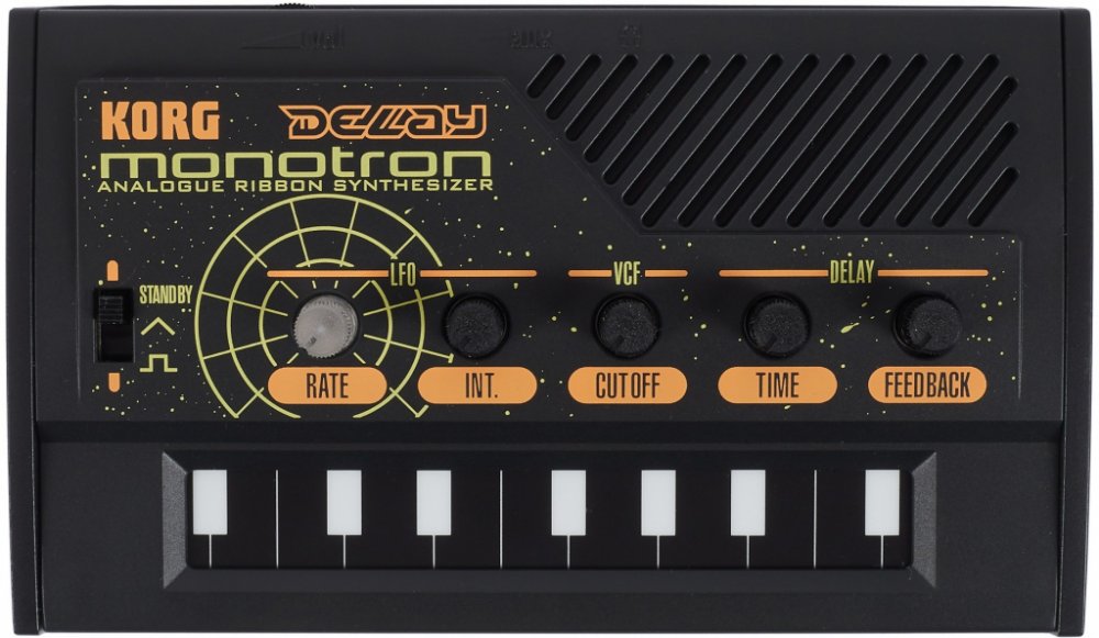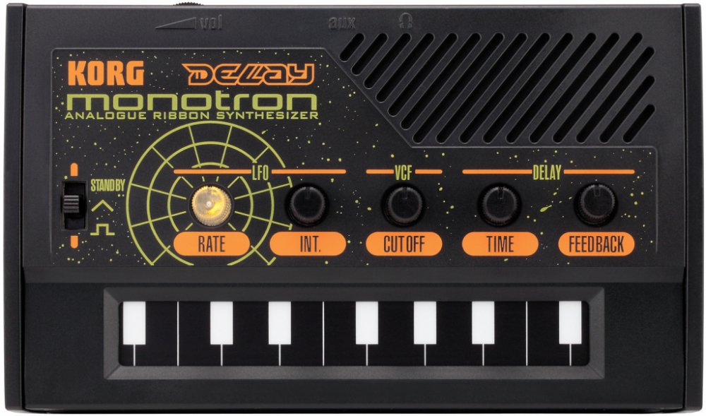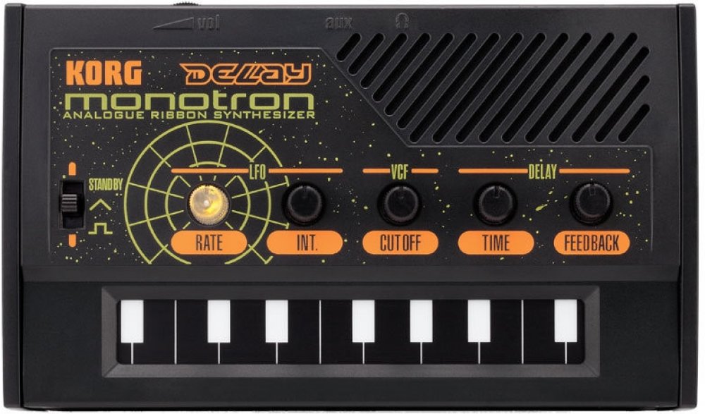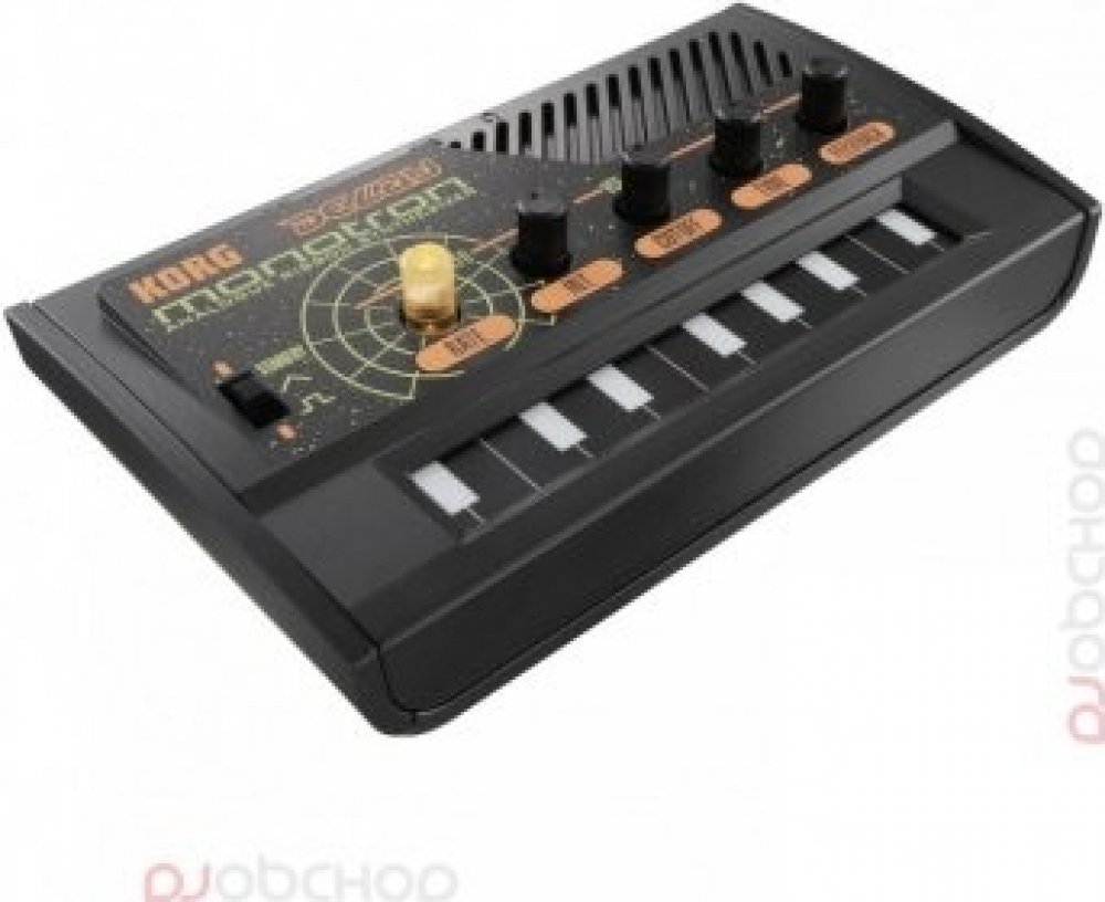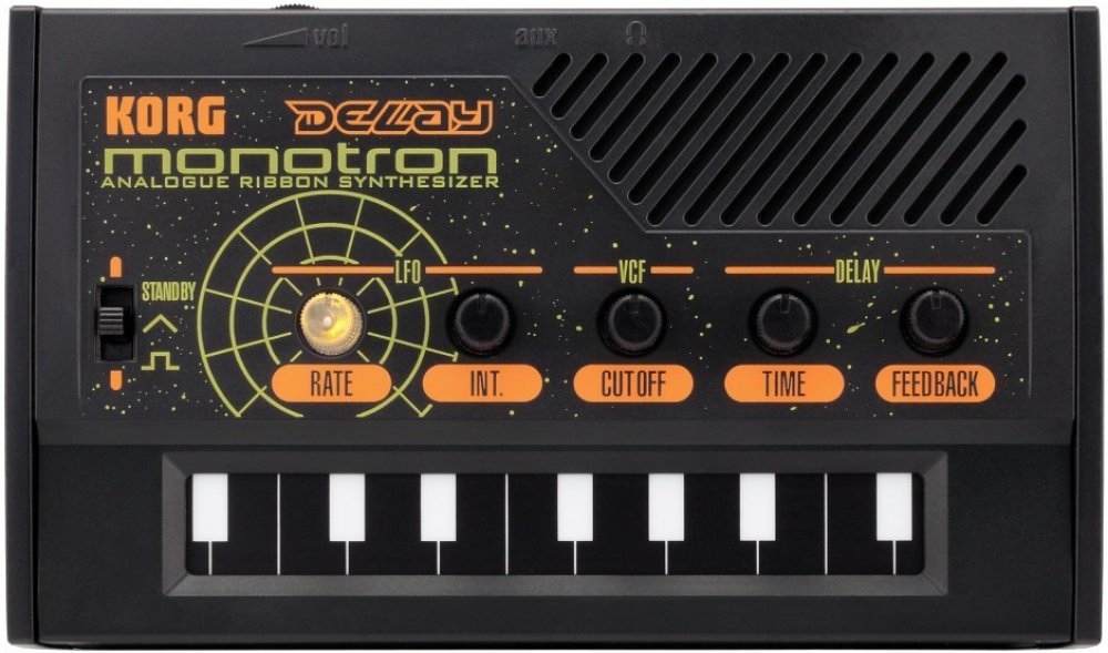 Analog se vrací, a je toho důkazem i tento malý, ale svým původem zvukově velký, analogový syntezátorek. Původ lze hledat hlavně v jeho legendárním analogovém LPF filtru, který můžeme nalézt u vyhlášených semi - modulárních syntezátorů osmdesátých let Korg MS - 10 a Korg MS - 20. Nástroj je navržen maximálně jednoduše. Jeho jednotlivé bloky jsou napěťově řízený oscilátor ( VCO ), napěťově řízený filtr ( VCF ) a nízkofrekvenční oscilátor ( LFO ) a delay efekt. Díky jeho jednoduchosti bude skvělou volbou pro začínající hudebníky a zajímavým spestřením pro zkušené muzikanty, kterým obohatí a rozšíří jejich zvukové možnosti. Další využití skýtá integrovaný sterefonní vstup, do kterého lze připojit kytaru, cd přehrávač, kaossilator, jiný syntezátor nebo sampler a přivést procházející audio signál přímo do filtru, kde se s ním můžete pořádně ` vyřádit `. Korg filtr je vyhlášen svou agresivitou a dynamikou. Klaviatura Monotronu je ve formě ribbon kontroleru a rozsahu 16 půltónů. Použití ribbon kontroleru pro tyto účely má své výhody stejně jako dotekově citlivý touch pad v případě Korg Kaossilatoru. Velmi jednoduše docílíte zvukových efektů, které by byly těžko realizovatelné na běžné klaviatuře. Na cestách pak zajisté uvítáte bateriové napájení, možnost hrát nejen se sluchátkami, ale i bez nich a využít tak interní reproduktor. Klaviatura • Ribbon kontroler ( 16 půltónů ) Zvuk • Analogový syntezátor • Polyfonie: 1 hlas • 1 X VCO ( napěťově řízený oscilátor, vlnový průběh: saw ) • 1 X VCF ( napěťově řízený filtr, klasický analogový Korg MS - 10/ MS - 20 LPF ) • 1 X LFO ( nízkofrekvenční oscilátor, modulace výšky tónu a prahové frekvence/ resonance, vlnové průběhy: square, sawtooth ) • Ovládané parametry: rychlost LFO, hloubka modulace z LFO, VCF cuttof, čas a zpoždění Delay efektu Kontrolery • 5 X otočný potenciometr • 1 X přepínač režimů • Regulátor hlasitosti Konektory • Audio vstup ( 3,5 TRS jack ) • Sluchátkový výstup ( 3,5 jack ) Napájení • Dvě baterie ( AAA/ LR 3, doporučeny alkalické ) Oz