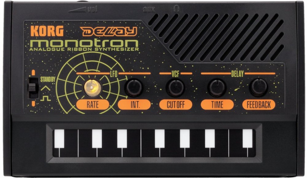 Analogový ribbon syntezátor Monotron – analogová syntéza se vrací, díky legendární tradici KORG. Plně vyvinutý, skutečně analogový syntezátor: VCO, VCF, LFO. Inspirující, jednoduchá ribbon klaviatura. Intuitivní, zábavné ovládání. Je vybaven stejným, klasickým analogovým filtrem, jako legendární Korg MS-10 & MS-20. Filtrujte libovolný externí zvukový zdroj na vstupním jacku. LFO moduluje buď výšku, nebo prahovou frekvenci filtru. Knob LFO Rate má vizuální LED indikátor. Interní reproduktor/sluchátkový jack umožňuje pracovat se zvukem kdekoliv – ať jste sami nebo s přáteli! Analogová syntéza na cestách! Díky napájení dvěma alkalickými AAA bateriemi, můžete kompaktní Monotron držet jednou rukou. Můžete se tak soustředit na nejdůležitější zvukové parametry. Na panelu je pět knobů a jeden spínač. Tvořit ve světě analogových syntezátorů nyní může už kdokoliv. Ribbon klávesový kontroler má svůj výraz Monotron převzal jednoduchého ovládání dotykem z mimořádně populárního KAOSS PADU. Pouhým pohybem prstu vyrobíte výrazné efekty, jako vibrato a glide. 1VCO, 1VCF, 1LFO – bloky modulární syntézy Obvody monotronu jsou velmi jednoduché: jeden napěťově ovládaný oscilátor, jeden napěťově ovládaný filtr a jeden nízkofrekvenční oscilátor. Jelikož každý knob přímo aplikuje specifickou změnu zvuku, proces tvorby zvuku je intuitivní a okamžitě srozumitelný. V jednoduchosti je krása. K dispozici jsou přesné výpisy presetů a parametrů, typických pro dnešní syntezátory. Kromě toho, monotron je mimořádně vhodný k průzkumu a experimentování. S monotronem si užijete zvukovou kreativitu, která vychází ze srdce analogové syntézy, takže je ideální volbou pro toho, kdo je mezi syntezátory nováčkem, nebo pro muzikanty, kteří chtějí rozšířit svou zvukovou paletu. Slavný filtr Korg Monotron využívá tentýž proslavený VCF obvod, jako klasické, semi modulární syntezátory KORG MS-10 a MS-20. Ty přišly na trh asi před 30 lety, a přesto jsou i dnes oblíbené kvůli svým agresivním, dynamickým filtrům. Knob VCF Cutoff nastavuje frekvenci zvuku filtru, knob VCF Peak přidá zesílení. Výkonný filtr je základním prvkem každého analogového syntezátoru, aplikuje dramatické změny zvuku a dodává mu intenzivní osobitost, která je klíčová při živém hraní. Využití semi modulární technologie Jako u originálního MS-20, také filtr monotronu můžete "slučovat", takže libovolný externí zvukový zdroj lze zpracovat filtrem monotronu. Vstupní jack (AUX) v kompaktním těle monotronu přidá signál AUX vstupu přímo před blok VCF. Tím získáte skvělou možnost zapojit KAOSSILATOR, kytaru nebo digitální audio přehrávač do monotronu a využít úpravy zvuku pomocí efektů filtru. Univerzální LFO nabízí audio – i vizuální – zábavu! LFO můžete přepínat, takže ovládá výšku oscilátoru nebo prahovou frekvenci filtru. Knoby LFO Rate i LFO Intensity zde najdete rovněž. Otočením knobu LFO Rate – vybaveného LEDkou – upravíte rychlost modulačního efektu a rychlost blikání LEDky se změní podle toho. Otočením knobu můžete dodat vyšší úroveň vlivu při živém hraní. Poslech kdykoliv – sám či s přáteli Monotron má vestavěný miniaturní reproduktor a k napájení postačí pouze dvě AAA baterie. I přes miniaturní velikost, tento systém přináší nové možnosti pro hraní. Je zde také sluchátkový výstup, který využijete při tvorbě zvuků doma, při nahrávání, nebo po zapojení do zesilovače či PA systému.