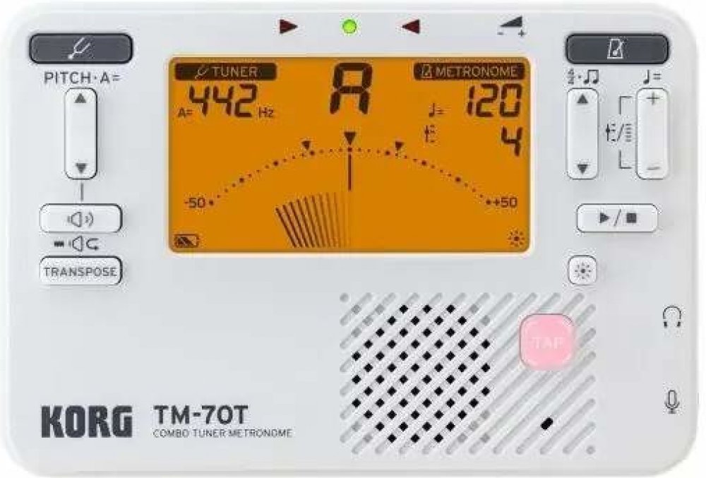 Ladička s metronomem TM-70T od společnosti Korg reprezentuje revoluční koncept spojení ladičky a metronomu do jednoho zařízení, jež je ideální pro procvičování rytmu u dechových i strunných nástrojů. S tímto nástupcem oblíbeného modelu TM-60T je používání ještě snazší. Tento kompaktní přístroj, který se pohodlně vejde do kapsy, je vybaven vylepšeným displejem pro lepší viditelnost a novou funkcí transpozice pro ladění v tóninách F, Bb a Eb, což jej činí nepostradatelným společníkem pro všechny hudebníky. Vylepšení se dočkala i kvalita zvuku a výstupu metronomu, což zaručuje jeho slyšitelnost i v rušném prostředí. Zlepšení kvality, rychlosti a přesnosti ladění je klíčové pro každé vystoupení, a právě v tomto směru TM-70T exceluje. Vyrobený kompletně v Japonsku dokazuje hrdost a závazek společnosti Korg k vysoké kvalitě, což potvrzuje její pozici lídra ve světě ladiček a metronomů. Podporuje široký rozsah nástrojů s detekcí od C1 do C8. Zároveň nabízí vylepšený metronom s možností nastavení tempa od 30 do 252 úderů za minutu, včetně tří typů nastavení tempa a 15 rytmických variací, což umožňuje širokou paletu rytmických cvičení. Uživatelé ocení dlouhou životnost baterie až 250 hodin, pohodlnou funkci zálohování paměti a automatické vypínání pro úsporu energie. Skládací stojánek umožňuje samostatné postavení zařízení, zatímco univerzální design s ikonami pro jednotlivé funkce zvyšuje uživatelský komfort.