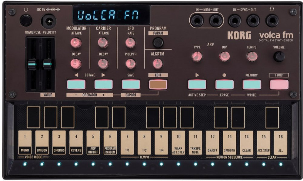 volca fm nové generace je výkonný 6-hlasý, 6-operátorový FM syntezátor se všemi 32 klasickými algoritmy, 16-krokový smyčkovým sekvencerem, efekty a výkonným arpegiátorem, který dokonale reprodukuje zvuk klasické Yamahy DX7, a je plně kompatibilní i se SYS-EX programy pro DX7.