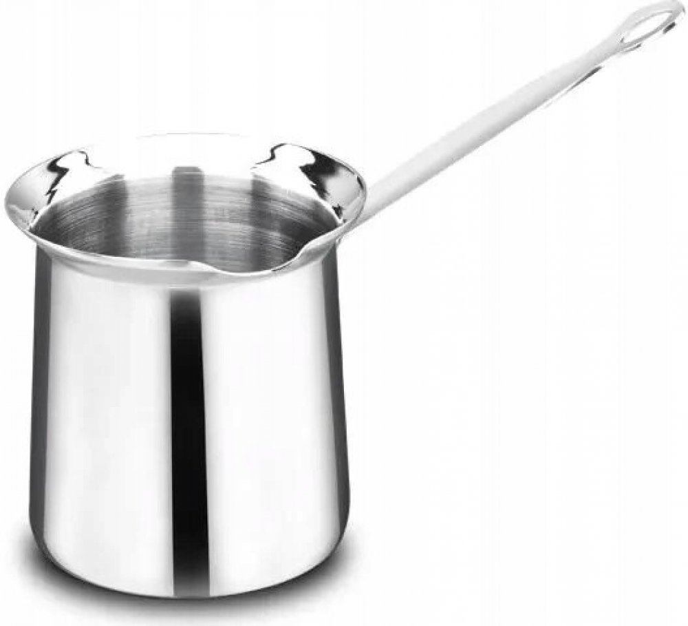 Moderní nerezová džezva je určena pro tradiční přípravu turecké kávy nebo ohřev mléka. Je vyrobena z prvotřídní nerezové oceli, leštěný povrch jí dodává elegantní vzhled. Objem 0,5 l. Snadnou manipulaci s džezvou zajišťuje praktická ergonomicky tvarovaná rukojeť. Lze ji použít na všechny typy sporáku kromě indukce. Džezva je sice magnetická, ale vzhledem k malému průměru nelze zaručit, že indukční vařič sepne. Z toho důvodu ji pro indukce nedoporučujeme.