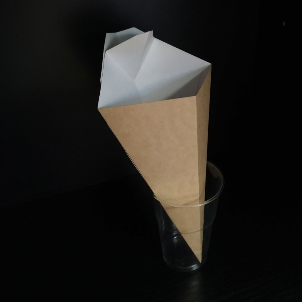 Kornout na hranolky papírový ,300 ml s kapsou na dip, kraft