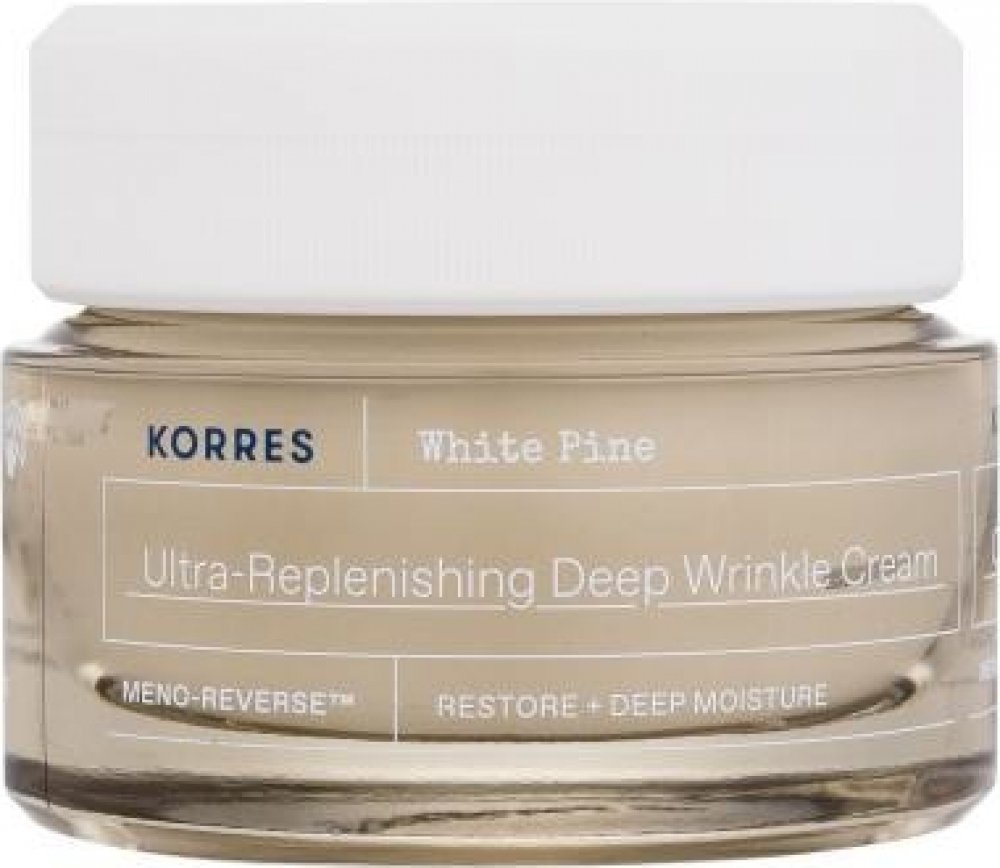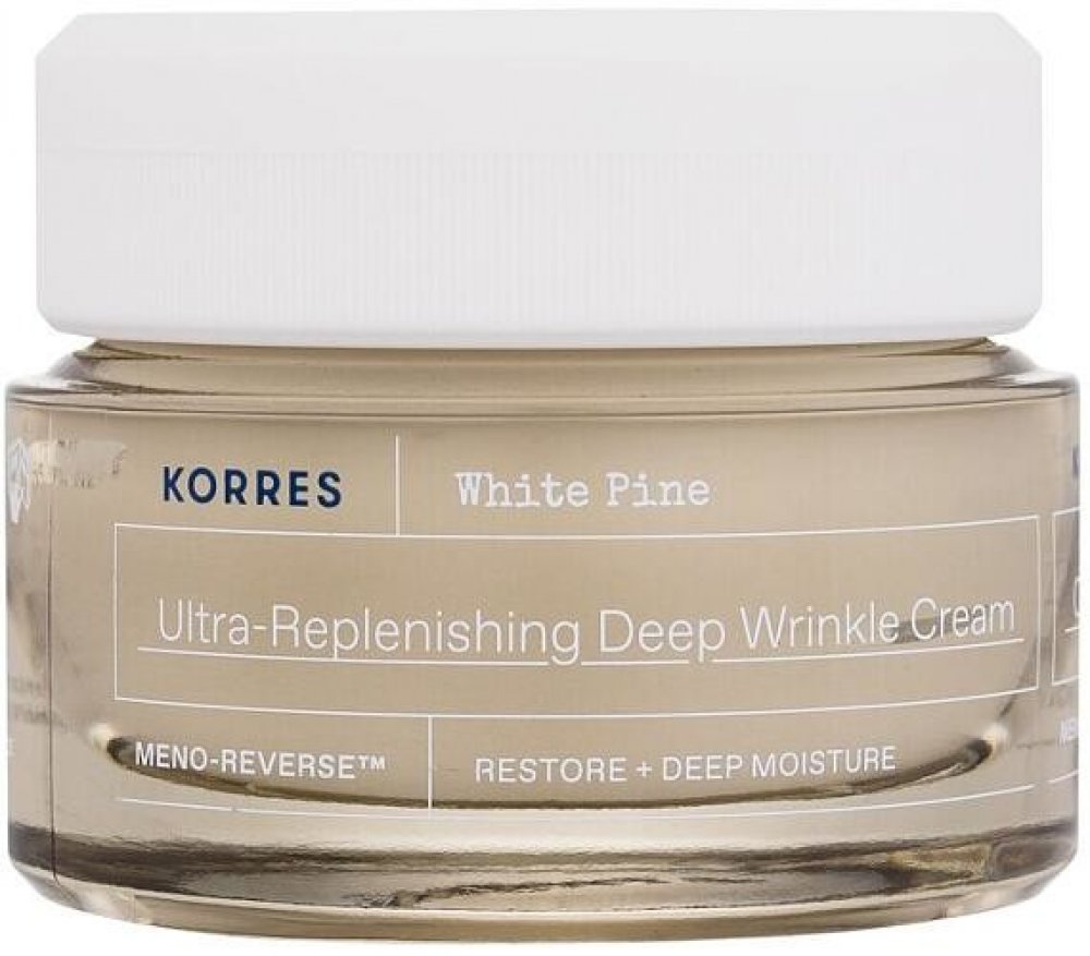 Korres White Pine Ultra-Replenishing Deep Wrinkle Cream. Přejete si, aby se vaše pleť cítila svěže jako před menopauzou? Sáhněte po zvláčňujícím krému Korres White Pine Ultra-Replenishing Deep Wrinkle Cream, který zpevňuje kontury obličeje a vyhlazuje i hluboké vrásky. Dodá pleti tolik potřebnou hydrataci a výživu a postará se o snížení viditelnosti tmavých skvrn. Zanechá vaši pleť hedvábně jemnou
